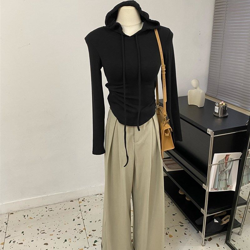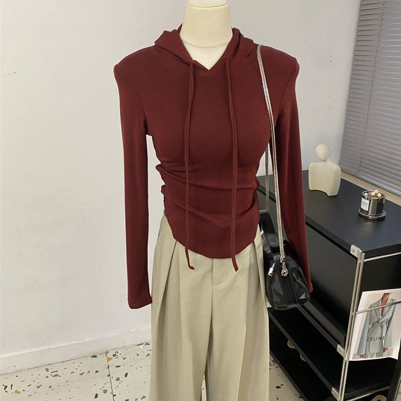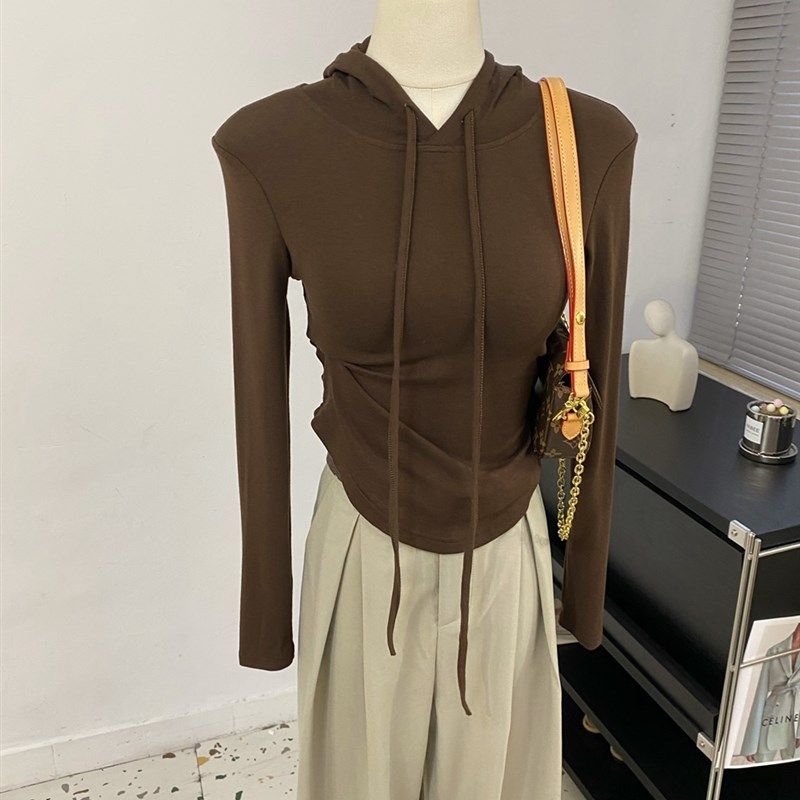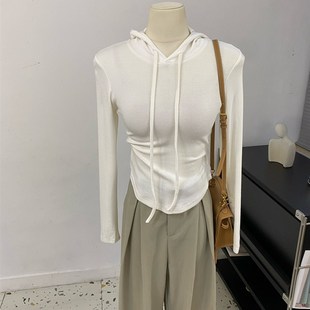 T恤女秋冬新薄卫衣打底衫 长袖 减龄休闲连帽修身 多巴胺绿色冷白皮