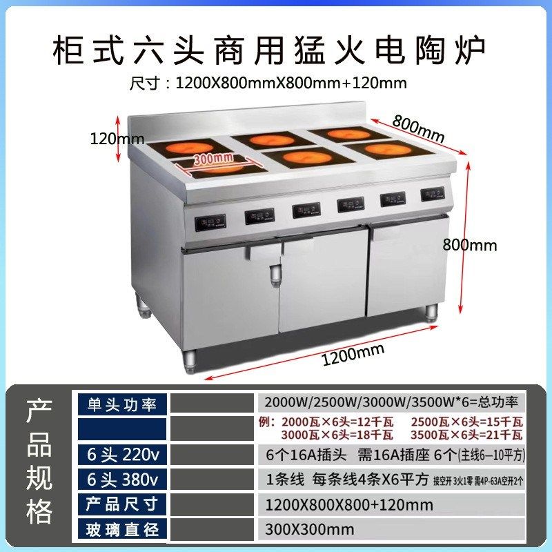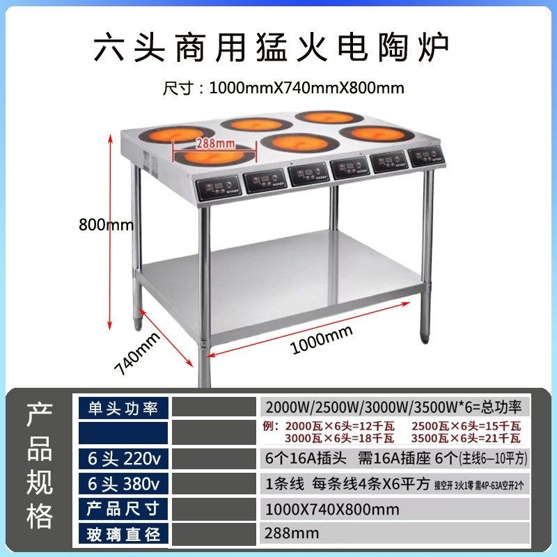 商用嵌入式 平面触摸电磁炉多头电陶炉4眼6组砂锅煲仔3500 整板台式