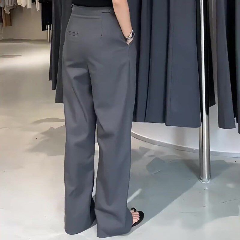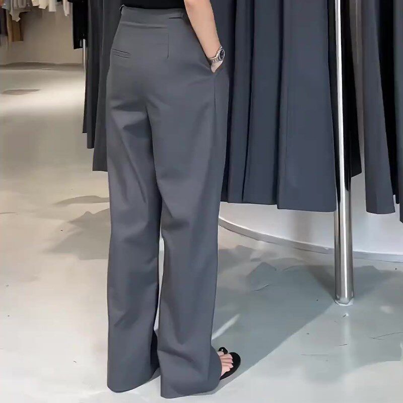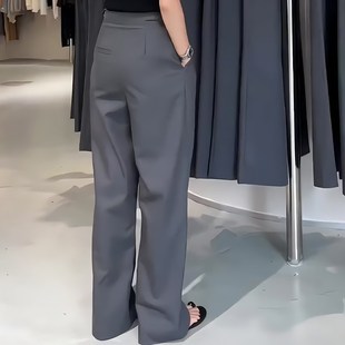 长款 高腰遮胯显瘦百搭阔腿直筒裤 西装 女2024年早秋新款 裤 灰色大码
