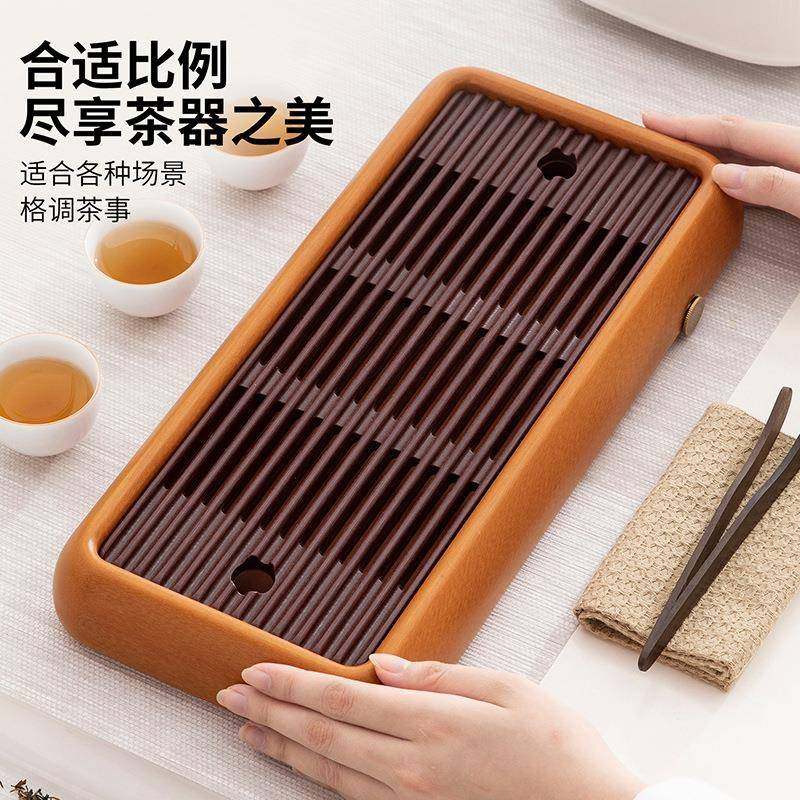 现代干泡台托盘茶盘家用轻奢简约小型沥储水式 茶台功夫茶具竹茶海