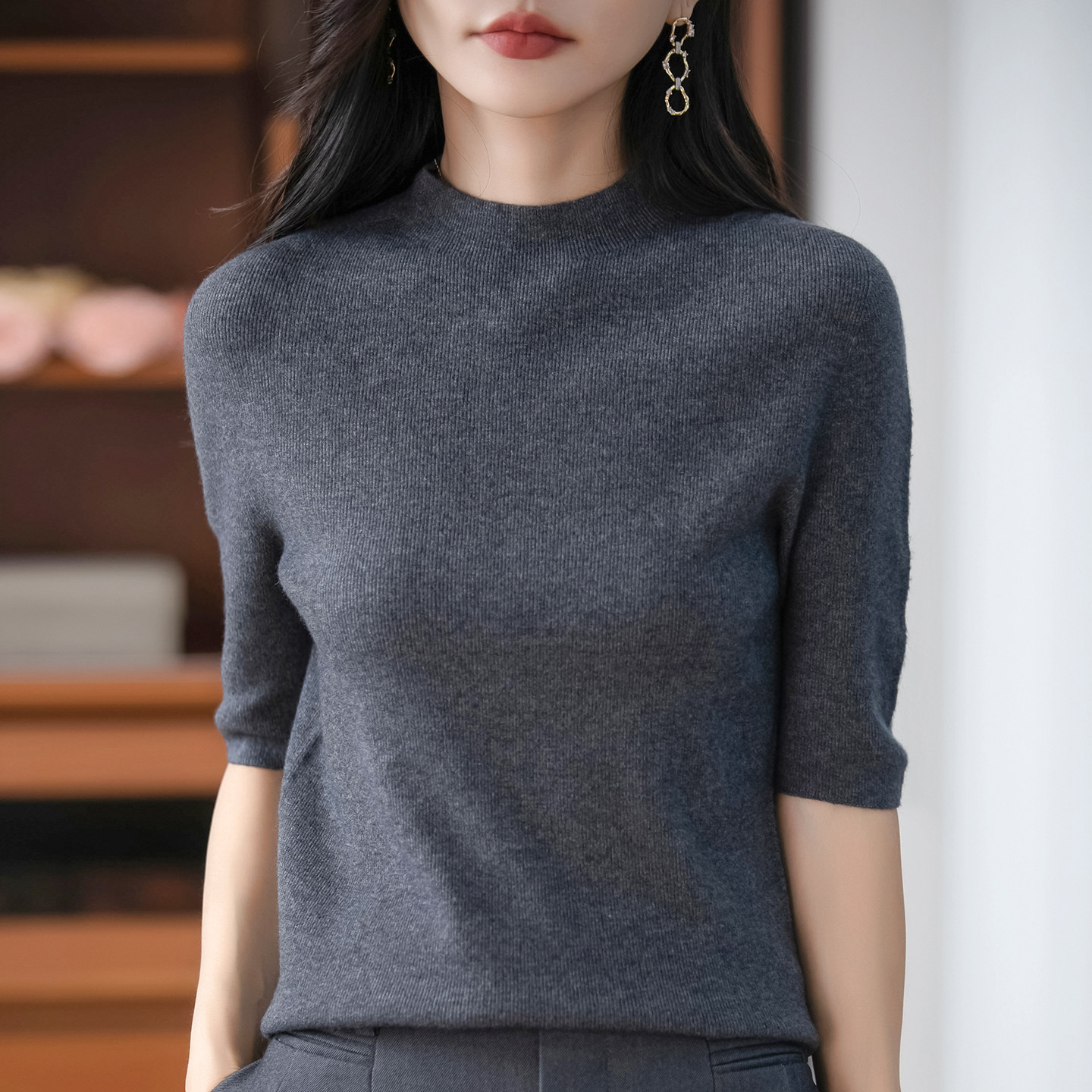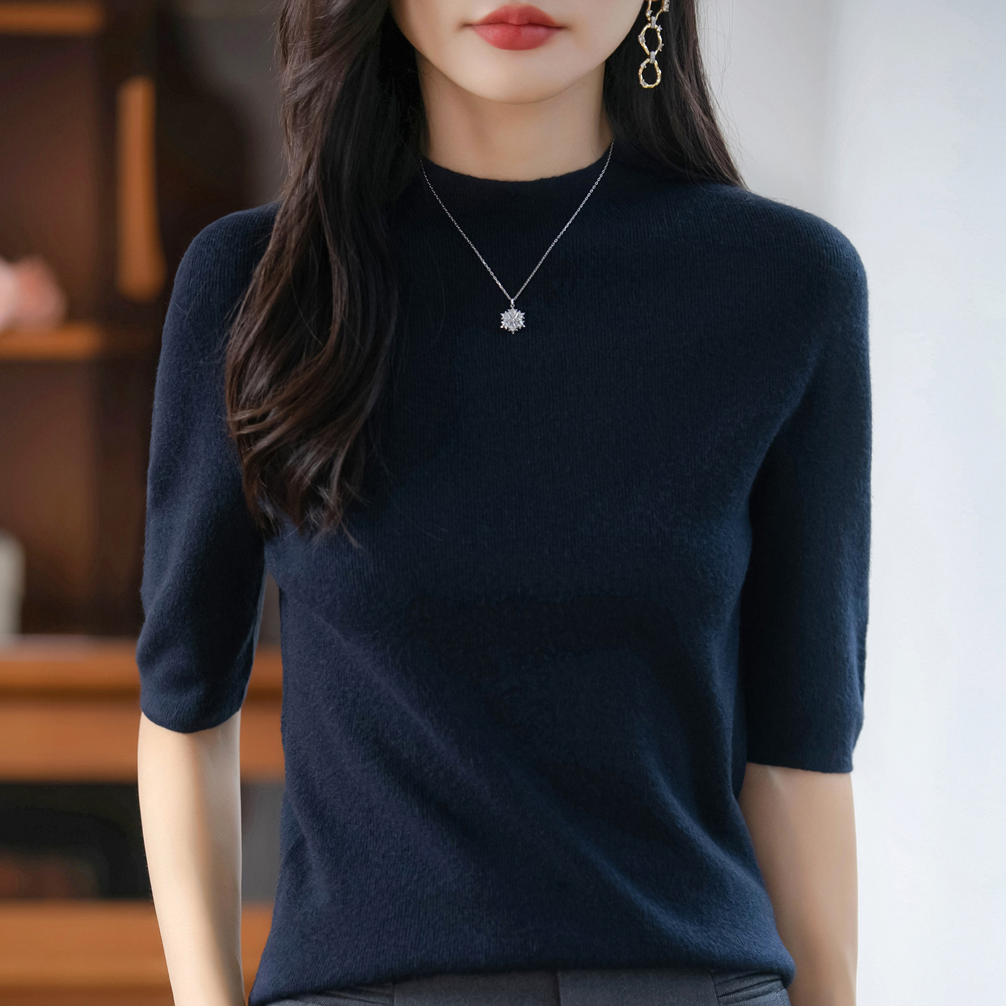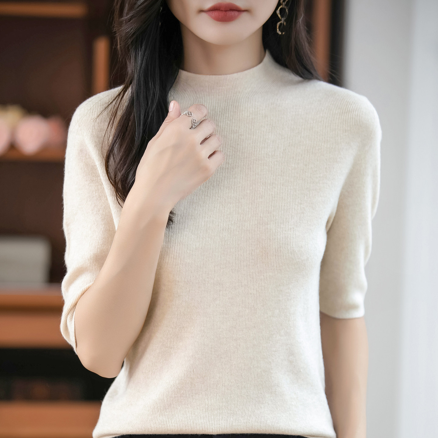 T恤外穿薄款 半高领五分袖 套头内搭毛衣半袖 女打底衫 上衣 针织衫