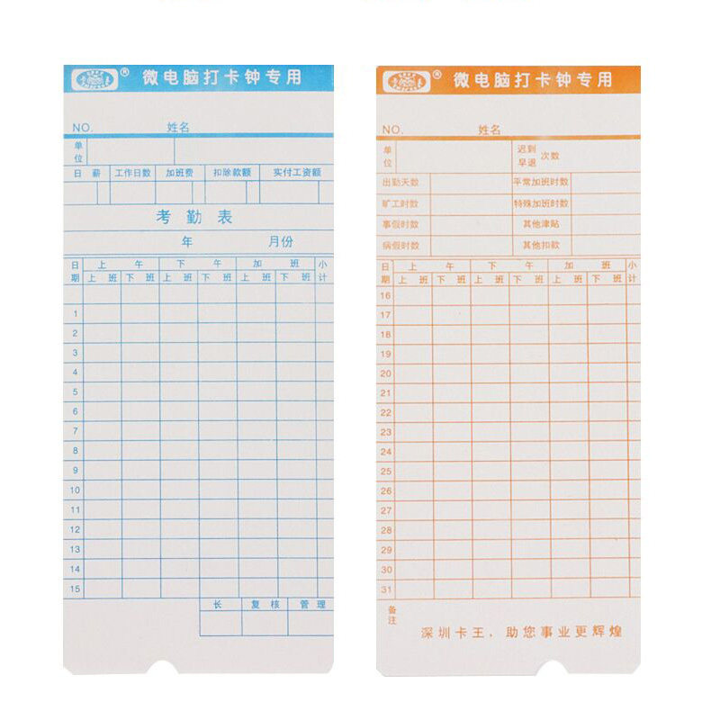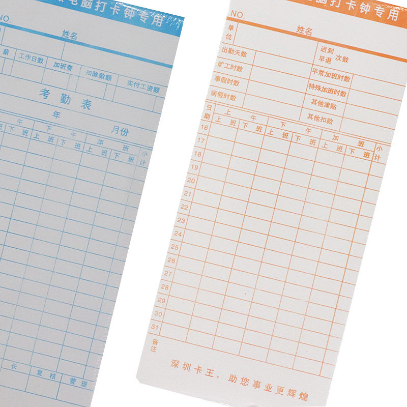 卡王微电脑通用考勤卡考勤卡纸工卡纸打卡钟专用纸考勤纸打卡纸
