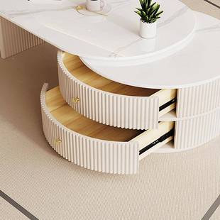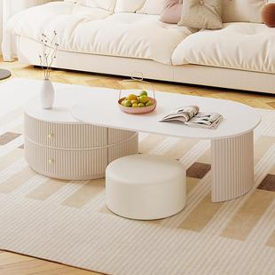 岩油风茶现代客奶厅家用板2025新款 小户型简约椭719圆形桌组合几