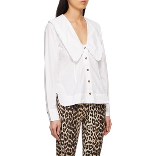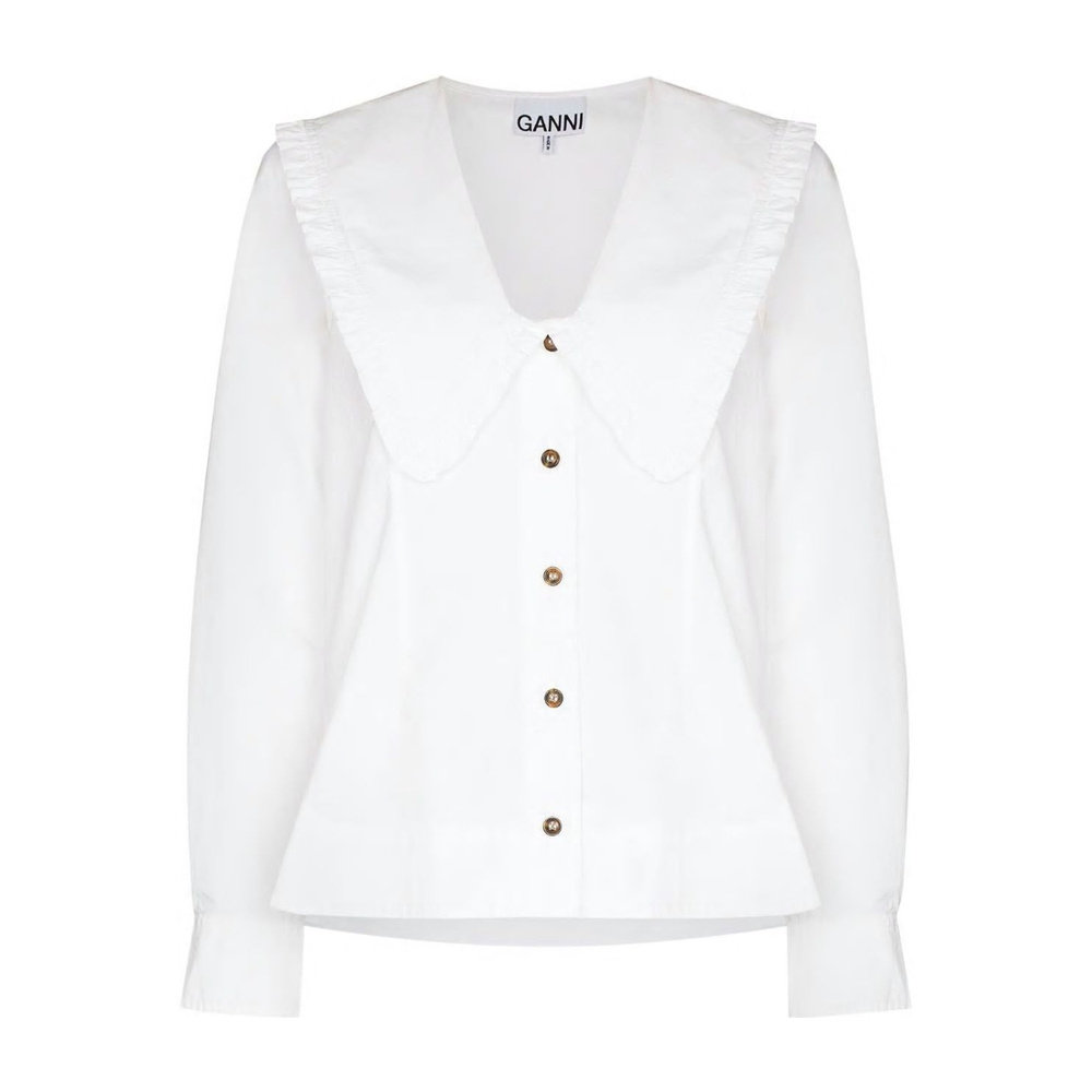 女士衬衫 荷叶边彼得潘领罩衫 F5778151 白色 AW2024 GANNI