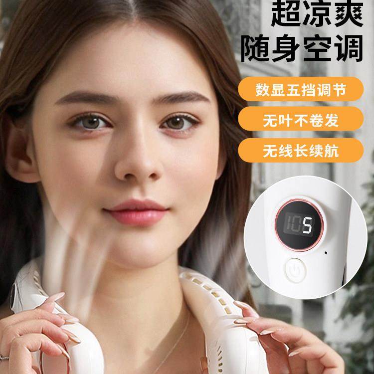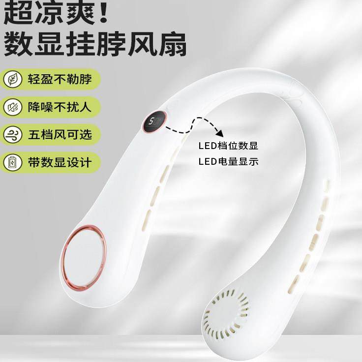 2025新款 USB充电电风扇户外运动高续航随身风 数显挂颈风扇可携式