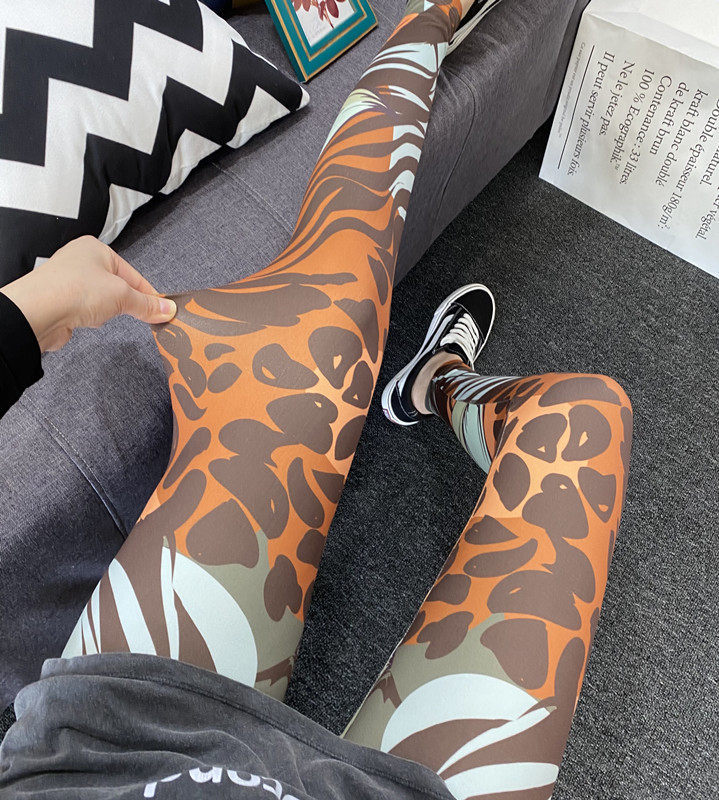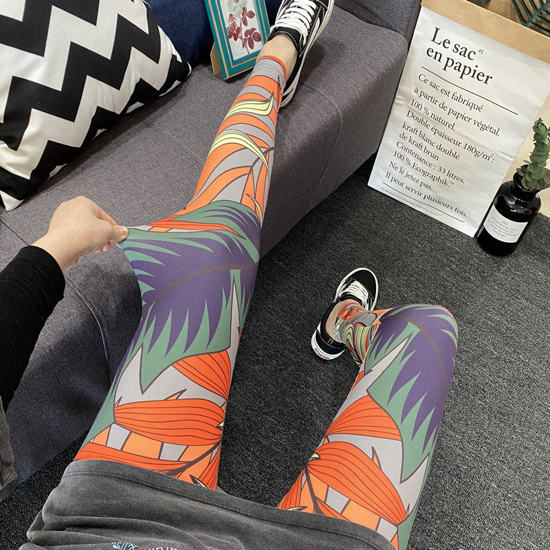 薄款 速发新款 高腰大身瑜伽九分码 运动打底裤 紧身 春夏弹力印花健裤