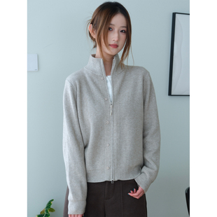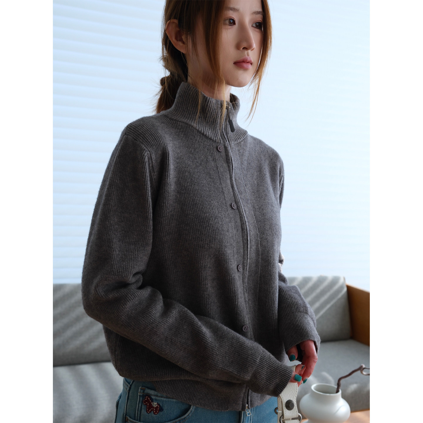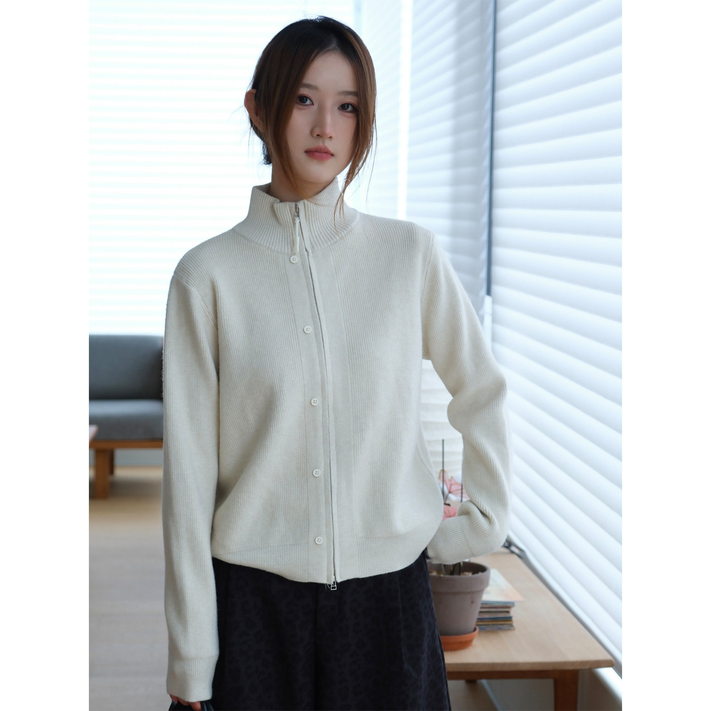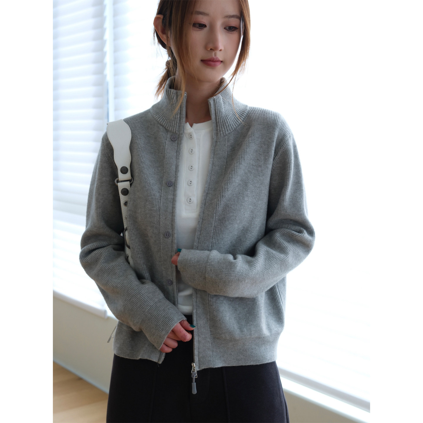 小阿秋三季 女纽扣双拉链毛衣外套冬 可穿气质简约立领羊毛针织开衫