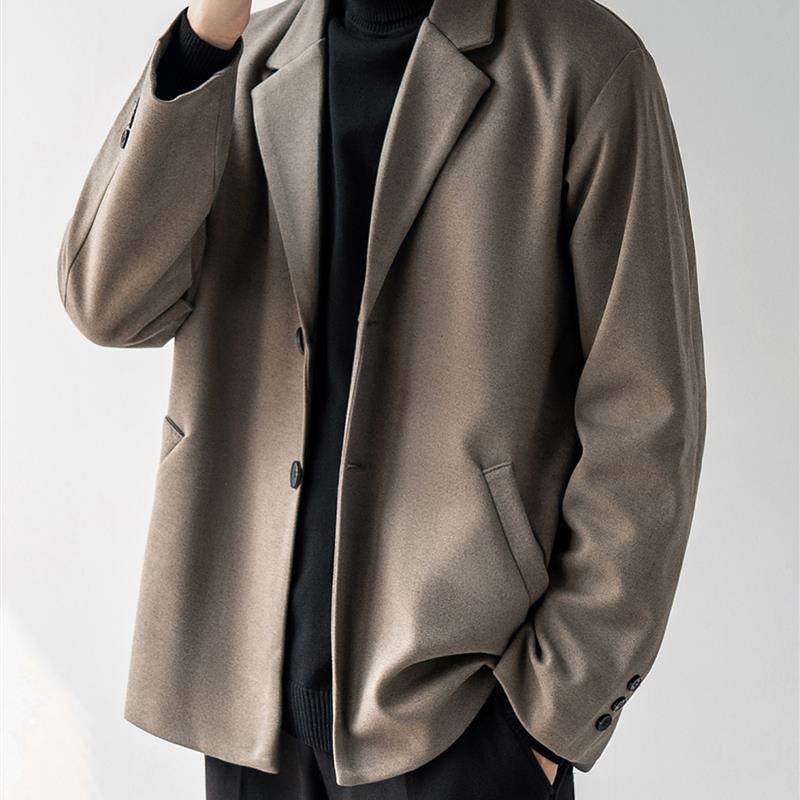 加厚呢子大衣韩版 高级感轻熟风男装 休闲西服 外套男春秋季 毛呢西装