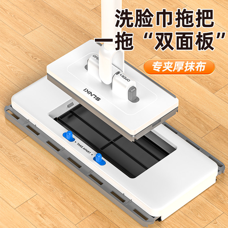 洗脸巾小拖把2026新款 可自动夹抹布家用一拖净干湿两用免手洗平板