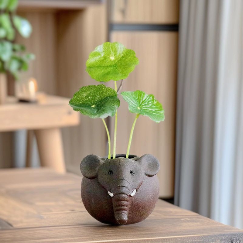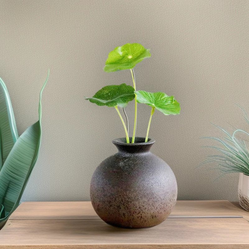 迷你水培小花瓶陶瓷复古餐桌装 饰品摆件办公室桌面绿植铜钱草茶玩