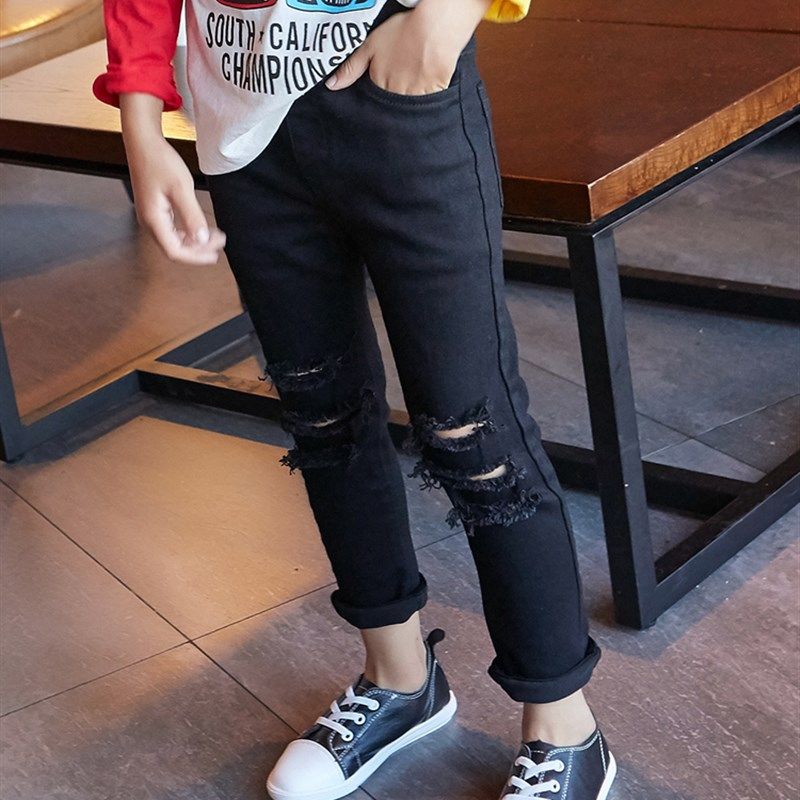 2024韩版 男童破洞牛仔裤 春装 弹力紧身小脚裤 潮 子儿童黑色街舞长裤