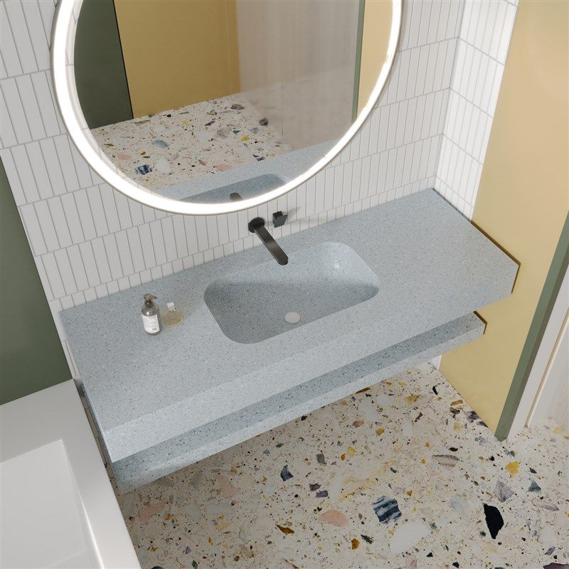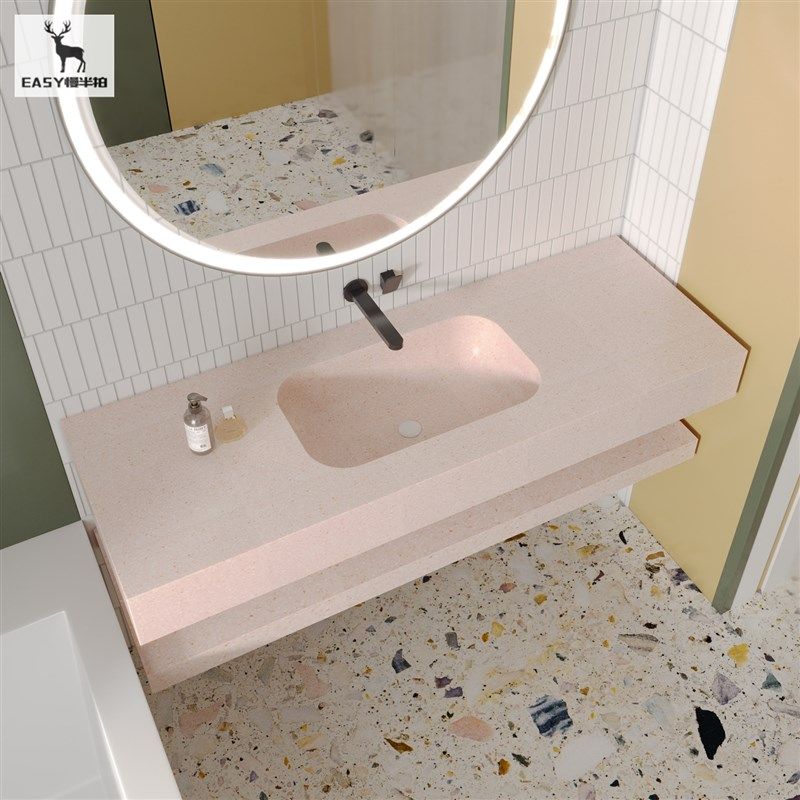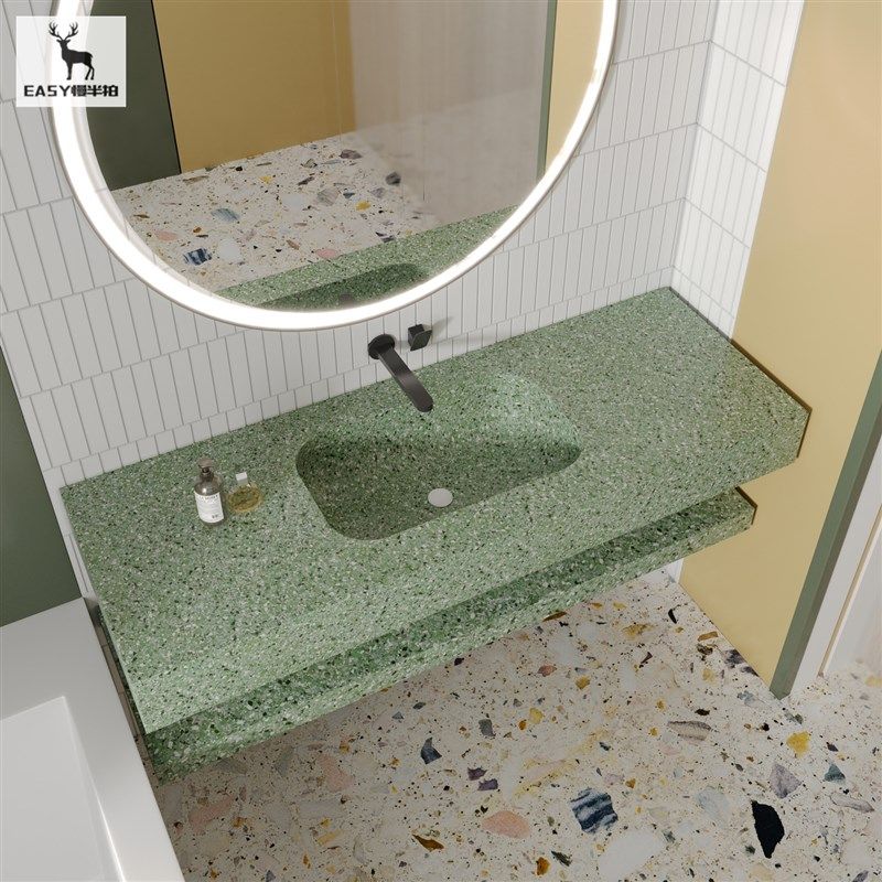 果绿色水磨石一体成型式 台盆洗脸盆洗手池洗漱台酒店民宿浴室水池