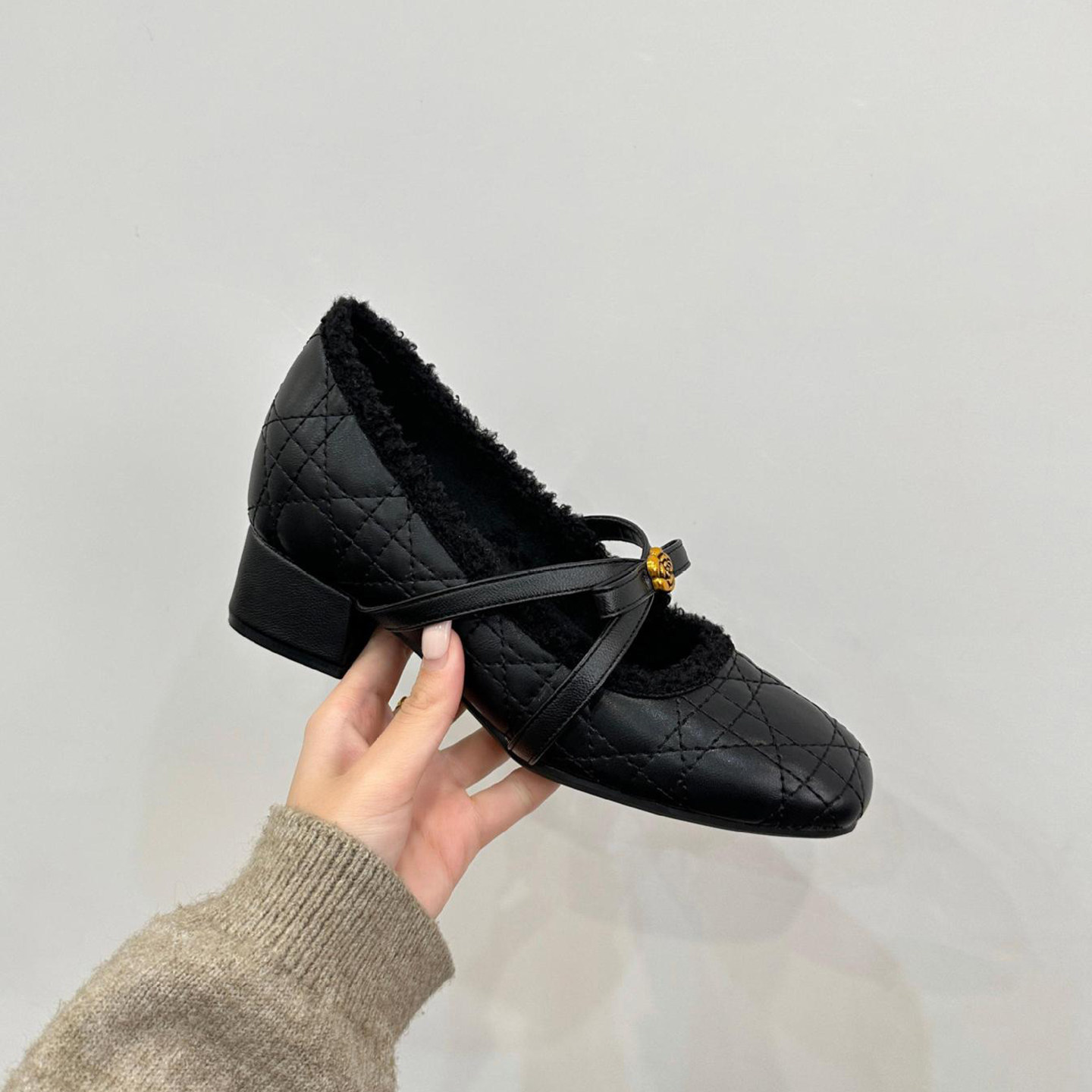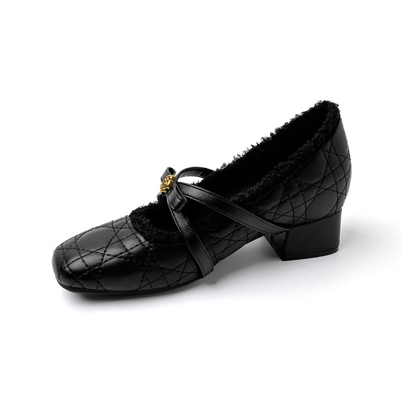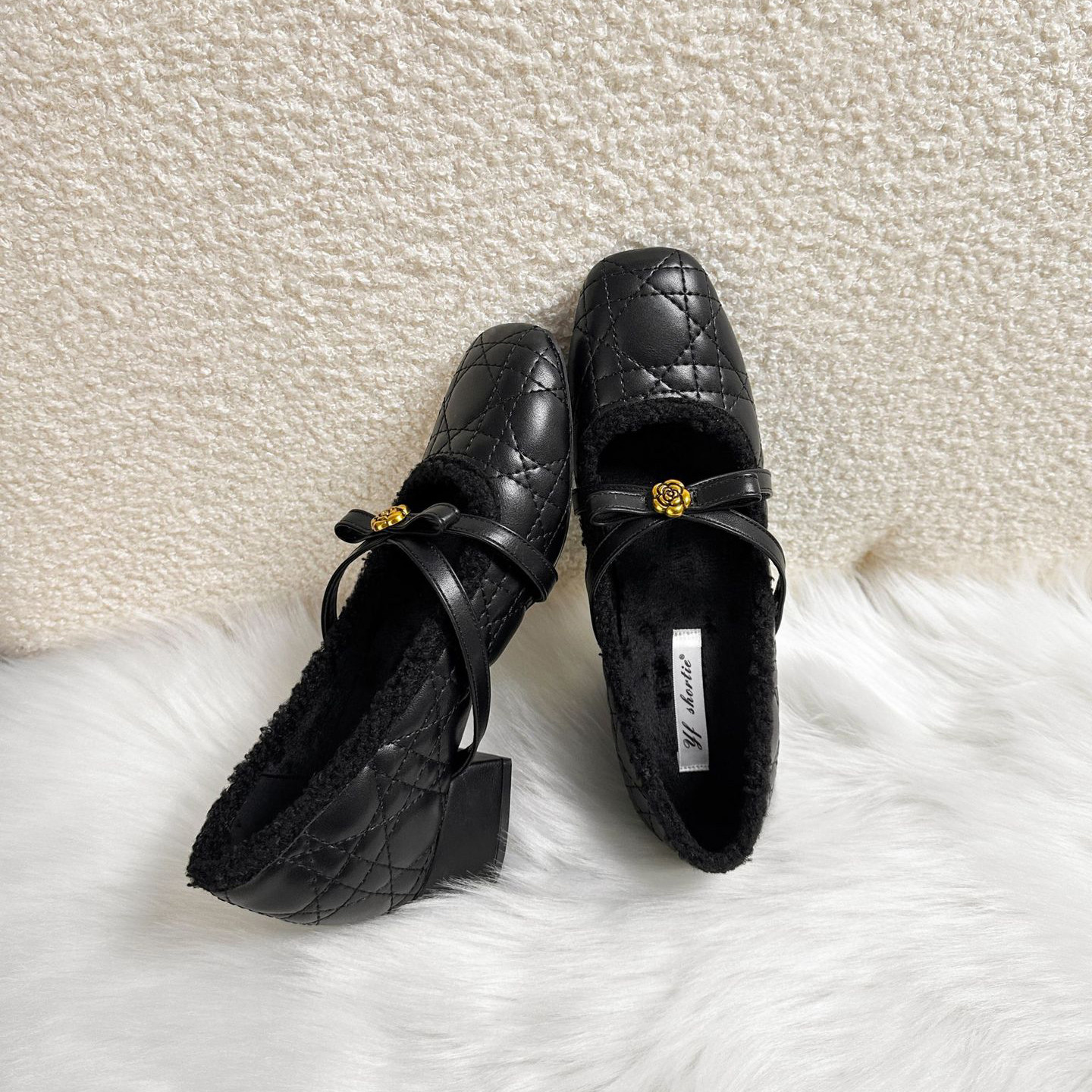 尖头气质玛丽珍鞋 山茶花一字扣粗跟单鞋 骄屿复古浅口高跟鞋 真皮