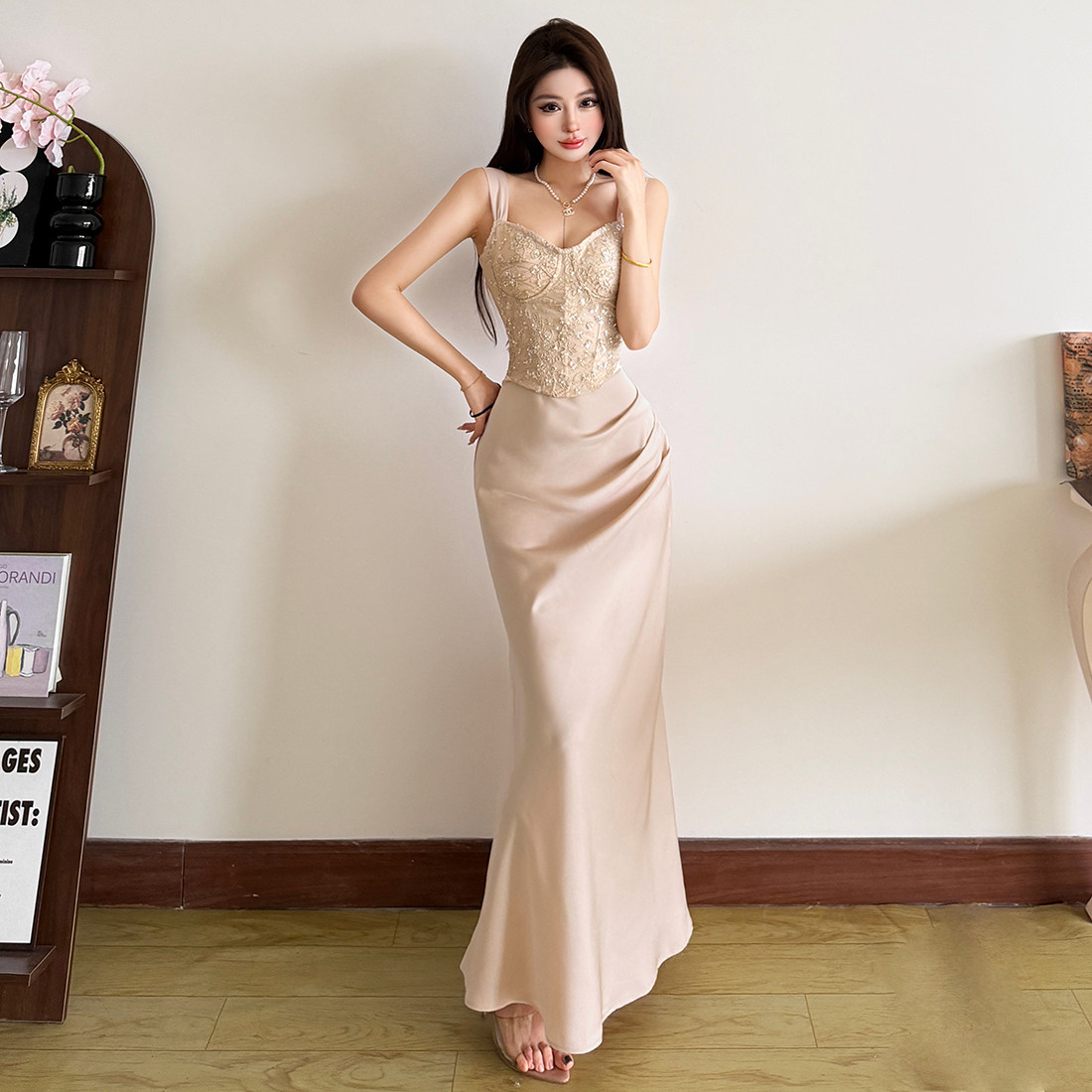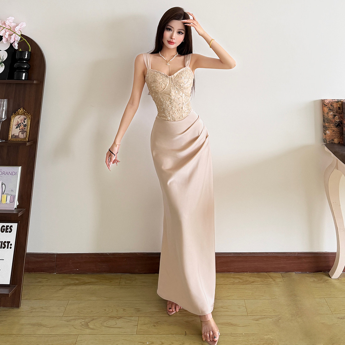 SylCue 性感又迷人撞色拼接V领显瘦吊带连衣裙褶皱收腰辣妹包臀裙