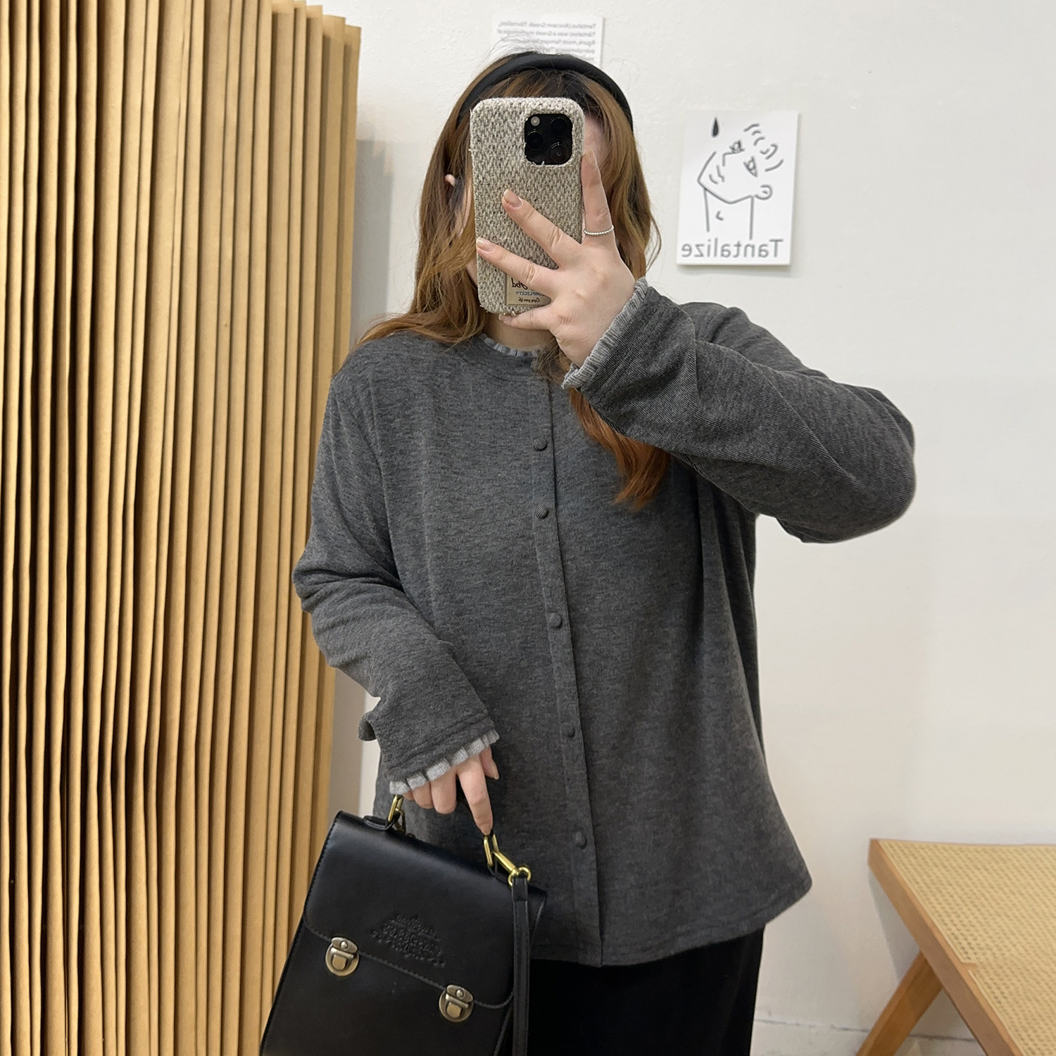 宛宛大码 女秋冬胖mm显瘦遮肚子毛衣洋气上衣 设计感花边针织打底衫