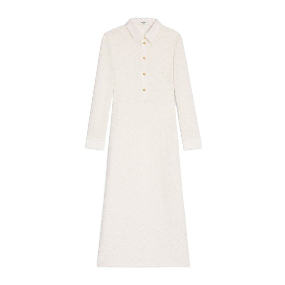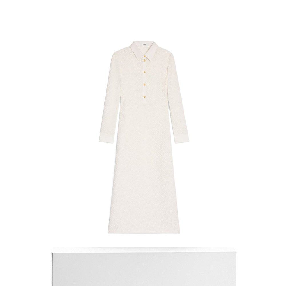女士连衣裙 翻领长袖 RR0BY046497IV 米白色 连衣裙 AW2025 CELINE