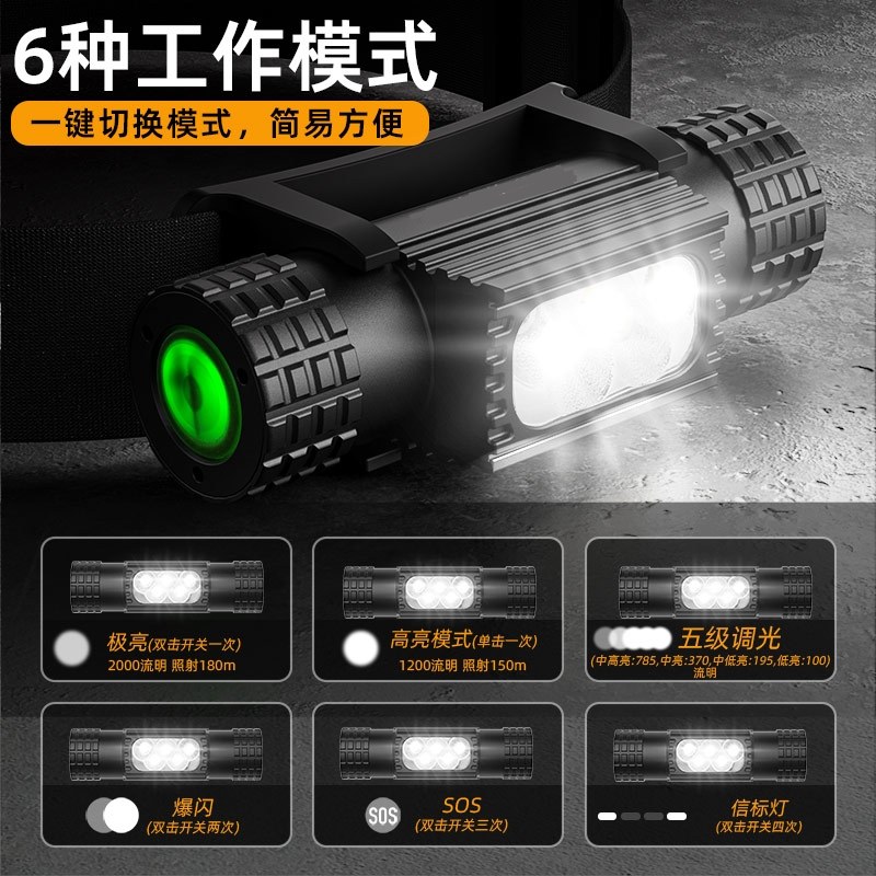 头戴式 强光头灯户外远射超长续航可充电防水超亮感应夜钓LED矿灯
