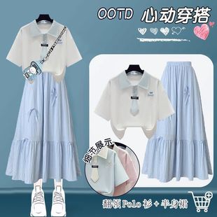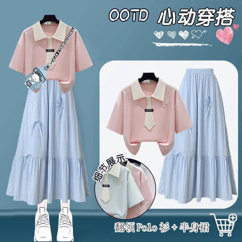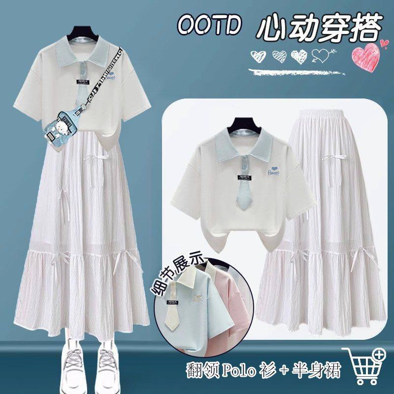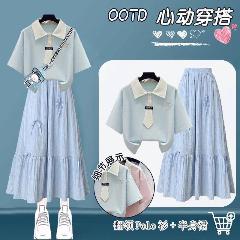 T恤 夏季 宽松学院风短袖 韩版 超仙半身裙两件套潮 小清新女学生套装
