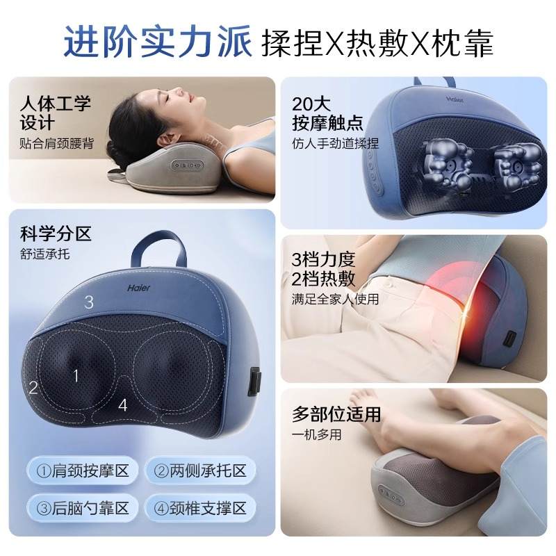 海尔颈椎按摩器颈部按摩仪按摩枕靠垫腰部背部全身揉捏热敷Y602M