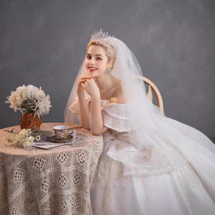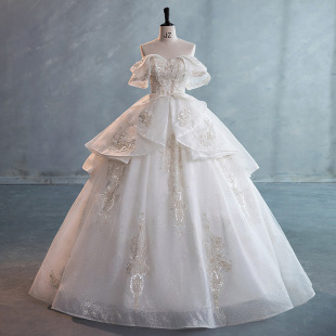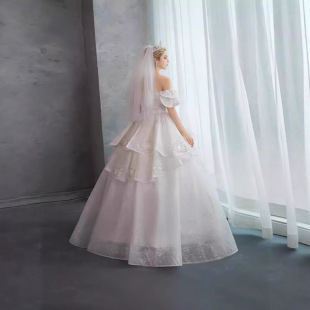 出租婚纱礼服新娘简约肩2025公主一字欧美新款 显瘦婚纱租赁 韩版