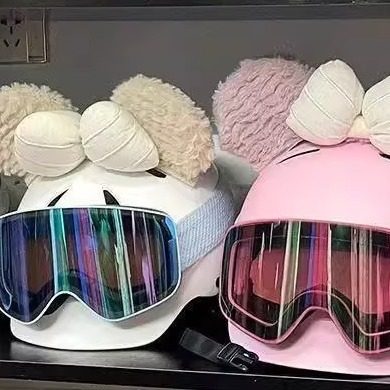 滑雪头盔装 饰配件 饰帽套单双板电瓶车雪盔罩女可爱儿童耳朵毛绒装