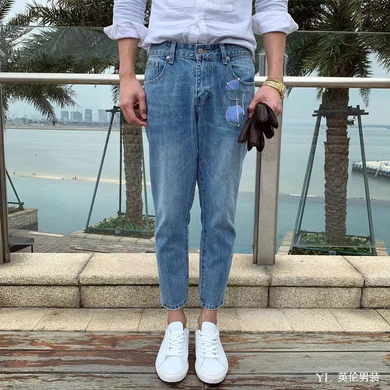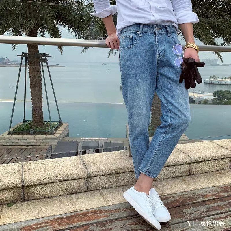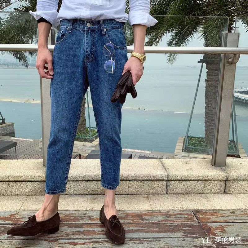 男士 直筒宽松牛仔裤 韩版 潮流百搭复古工装 2024夏季 九分休闲裤 新款