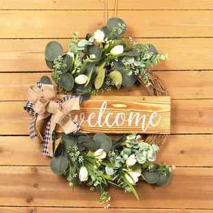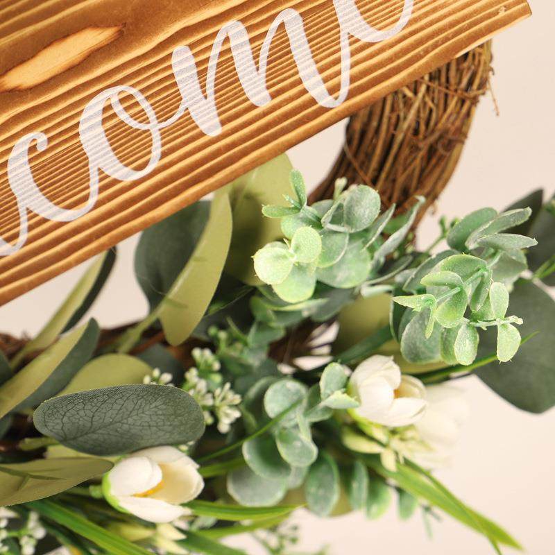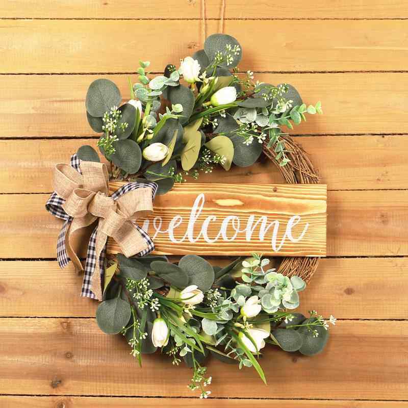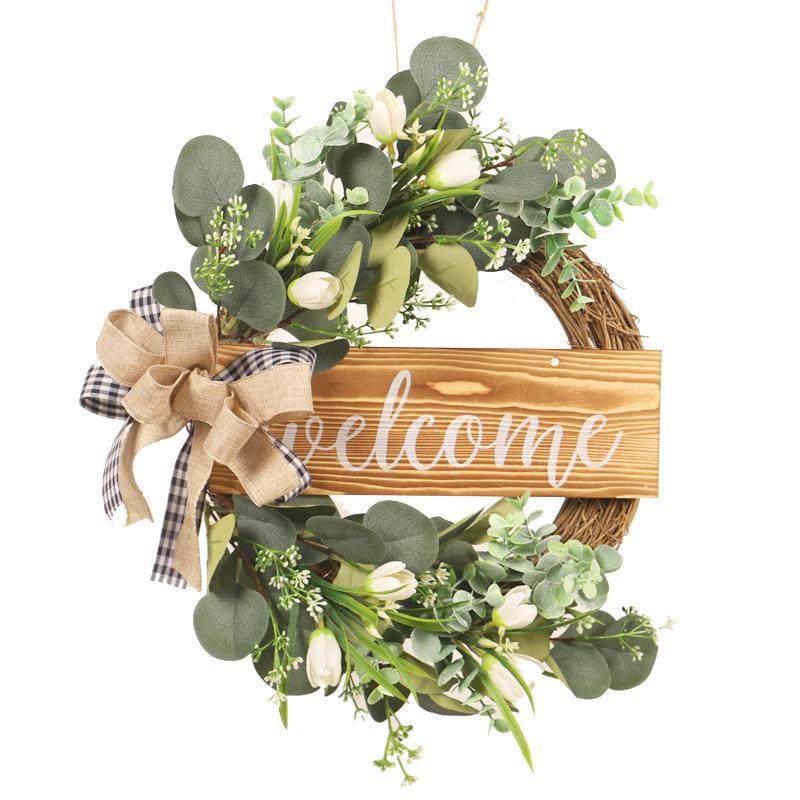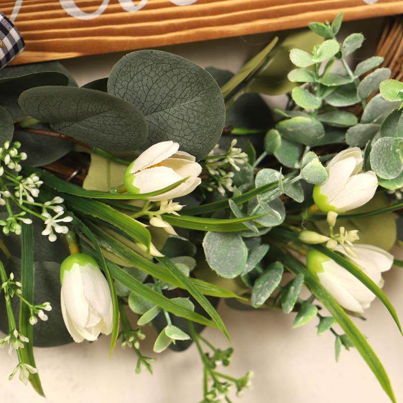 鸿禹仿真绿植木牌麻布结花圈仿真郁金香尤加利叶花环