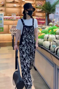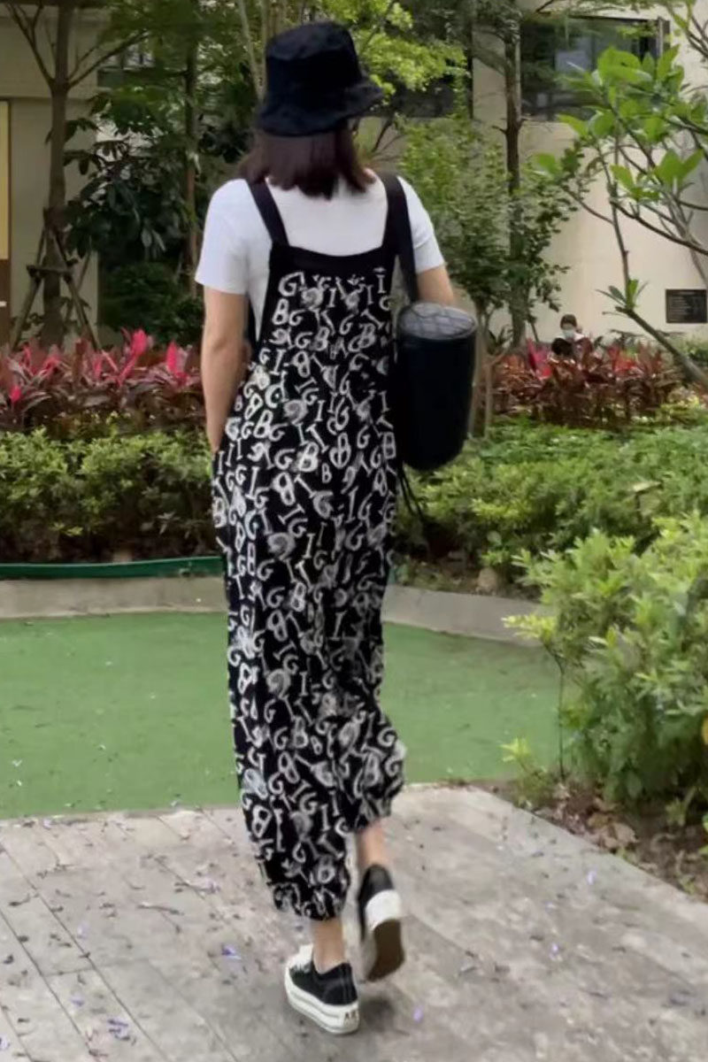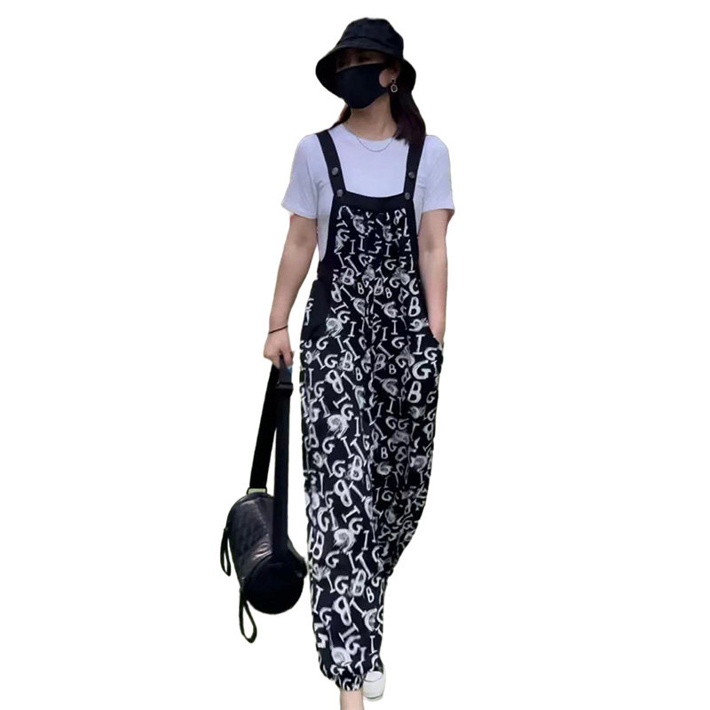 宽松大码 女装 显瘦碎花背带裤 夏季 2024哈伦休闲裤 韩版 九分裤 子 新款