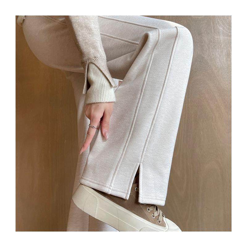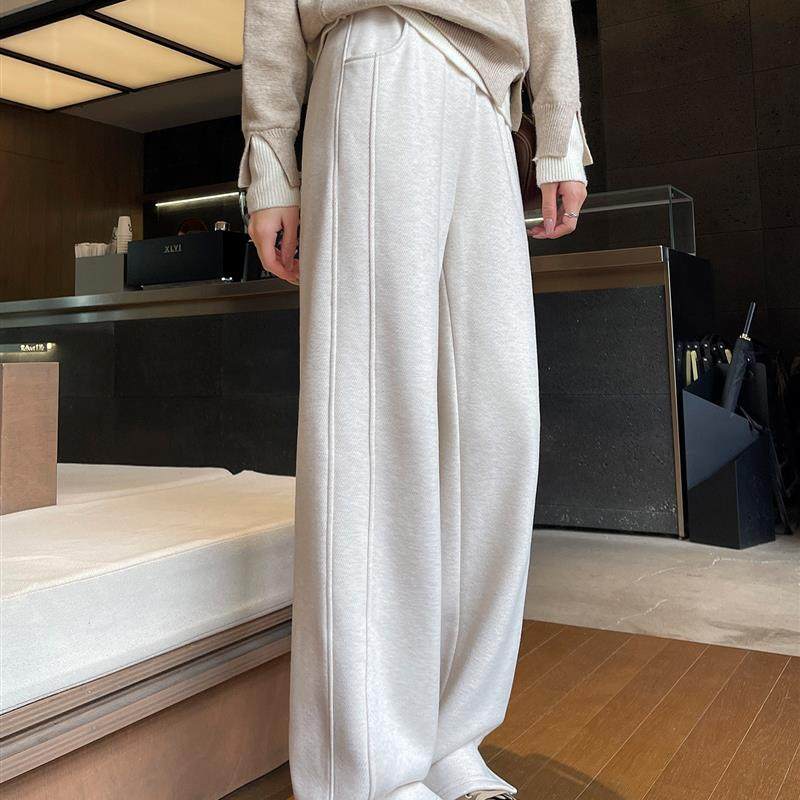 子灰色垂感运动 加绒加厚宽松直筒香蕉裤 糯米弯刀裤 女2025冬新款