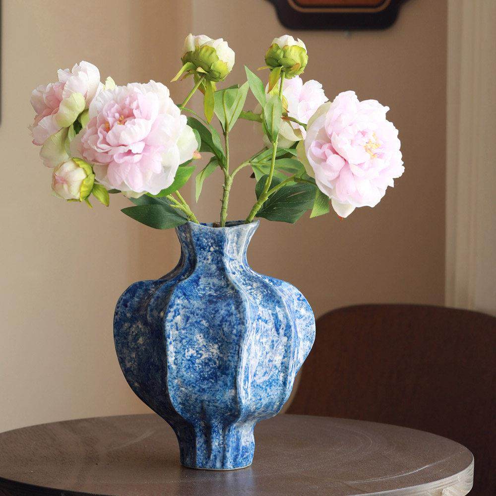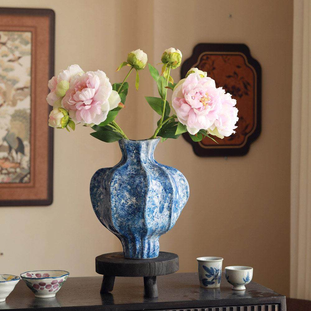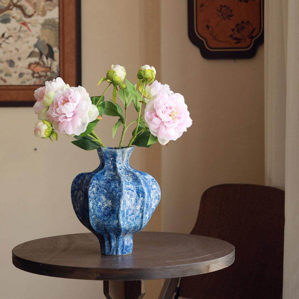 青默窑中式 复古陶瓷花瓶高级感氛围插花器水培客厅玄关摆件品月瓶