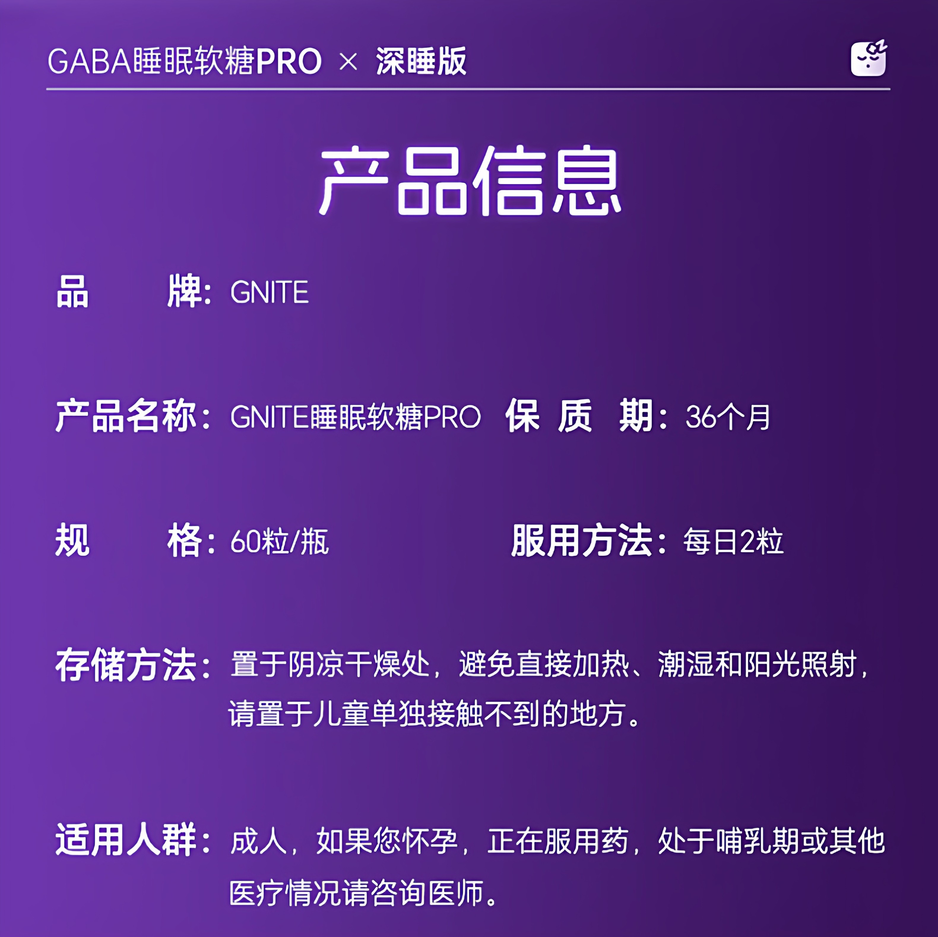 GNITE睡眠软糖GABA三代升级Pro氨基丁酸60粒酸枣仁美国原装 进口VX