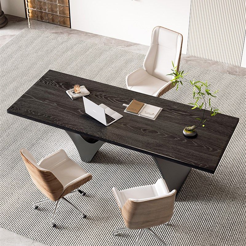 意式 轻奢实木小型老板桌办公电脑桌现代简约高端商务书桌独立单人