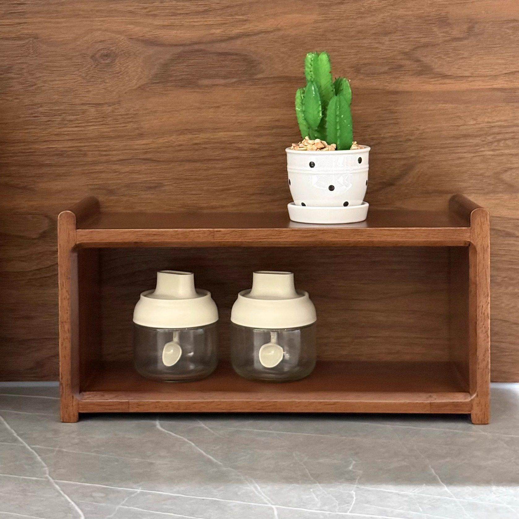 咖啡角布置双层全实木格子置物架咖啡杯收纳架厨房黑色展示架子
