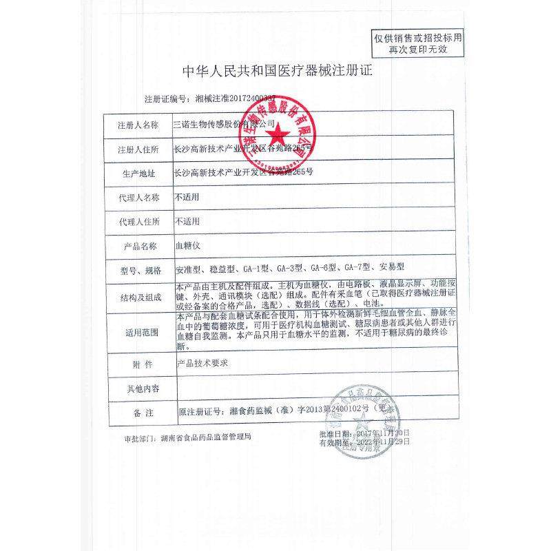 三诺皿糖试纸GA 仪器家用皿糖仪国家补贴 6皿糖侧试仪家用侧皿糖