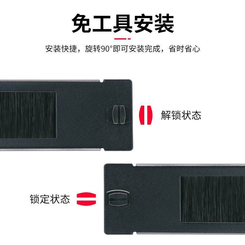 1U机柜毛刷盲板带刷挡板防尘假面板监控航空柜毛理线器填空板过线