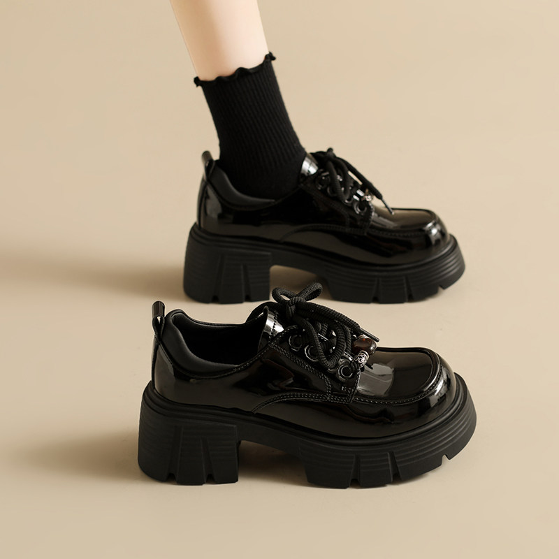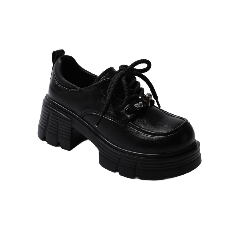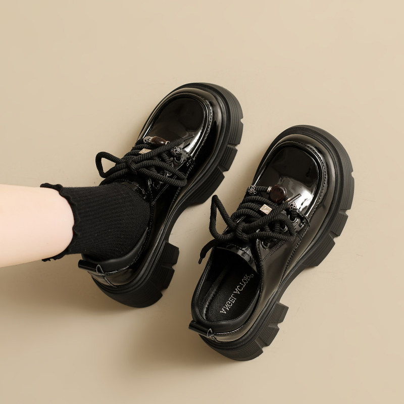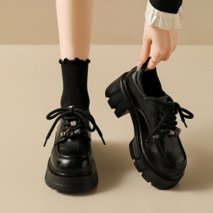 女增高系带英伦风黑色学院风小皮鞋 单鞋 女2026新款 7cm厚底乐福鞋