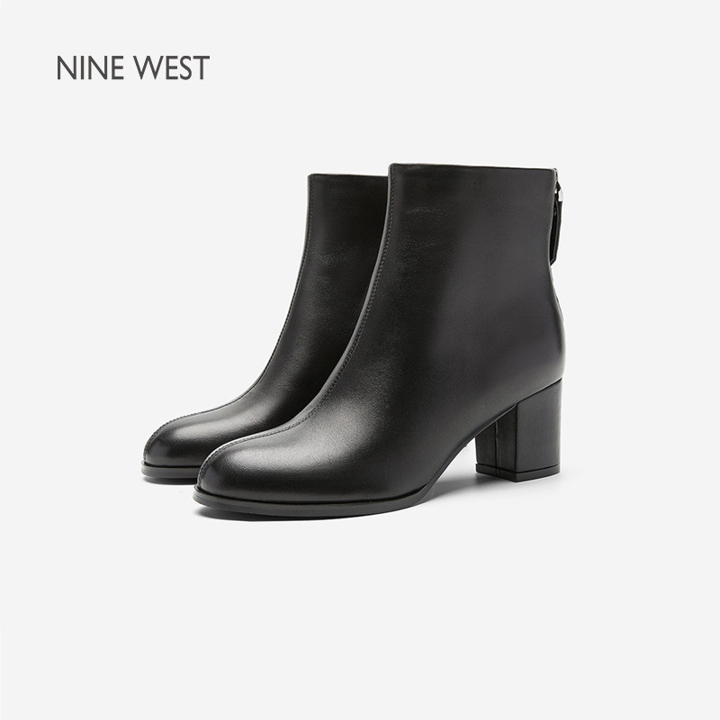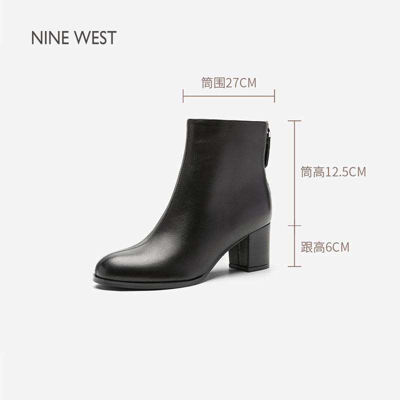 方头粗跟短靴通勤休闲靴子女鞋 热风高跟时装 法式 新款 靴2025年冬季