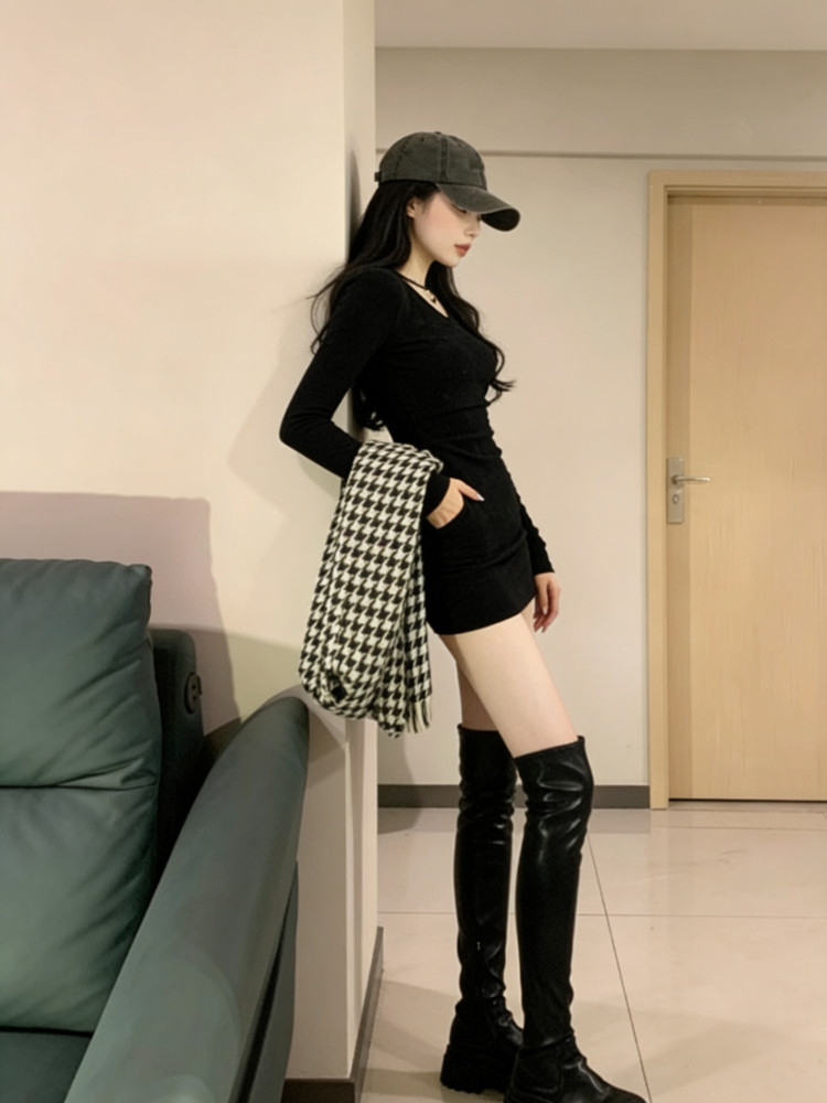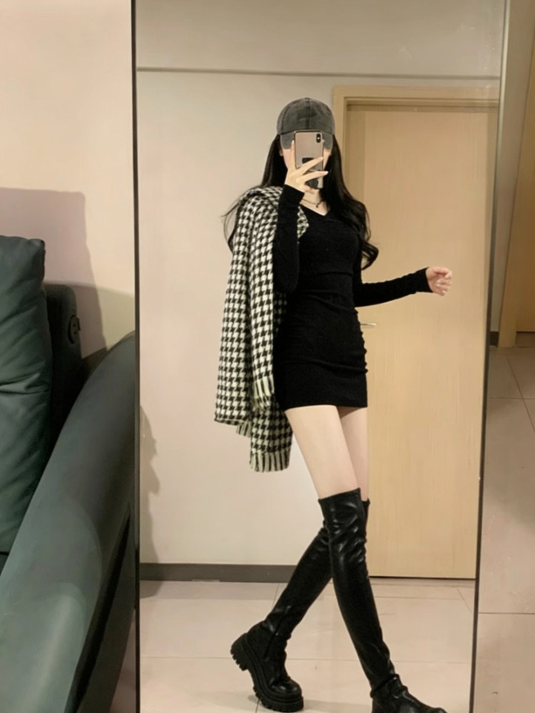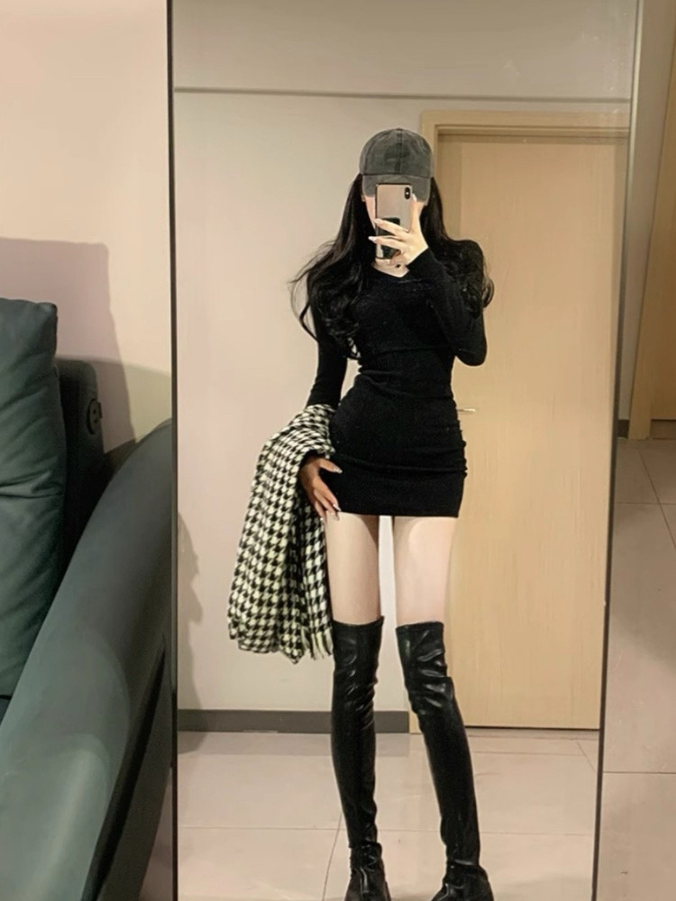 连衣裙女秋冬高级感小个子内搭打底裙 气质长袖 2025年新款 法式