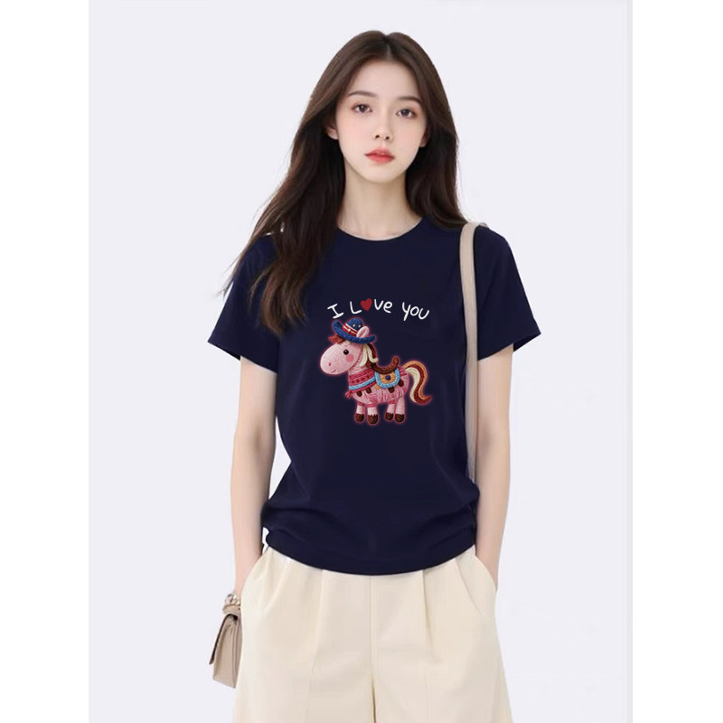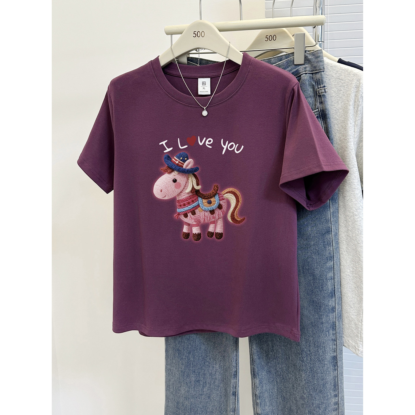 小马印花正肩短袖 体恤衫 t恤女装 穿搭半袖 上衣潮 胖mm大码 2026新款