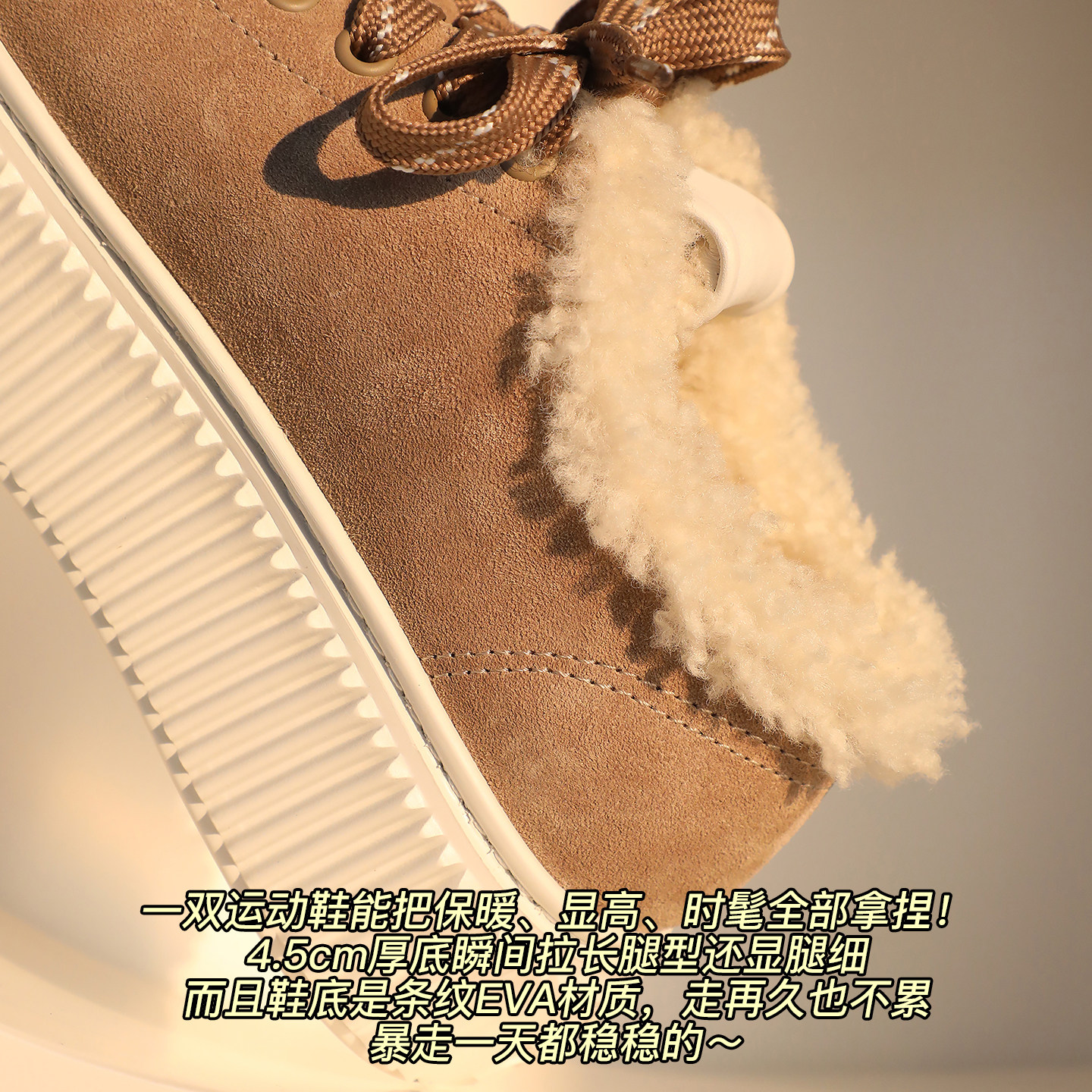 加绒休闲运动鞋 厚底德训鞋 2025秋冬新款 小白鞋 红 小个子内增高女鞋