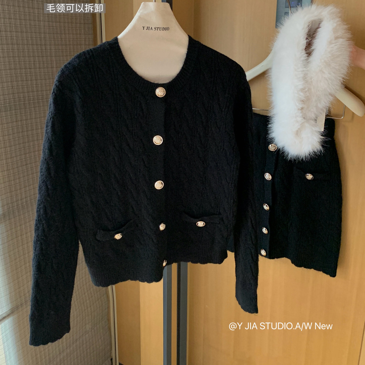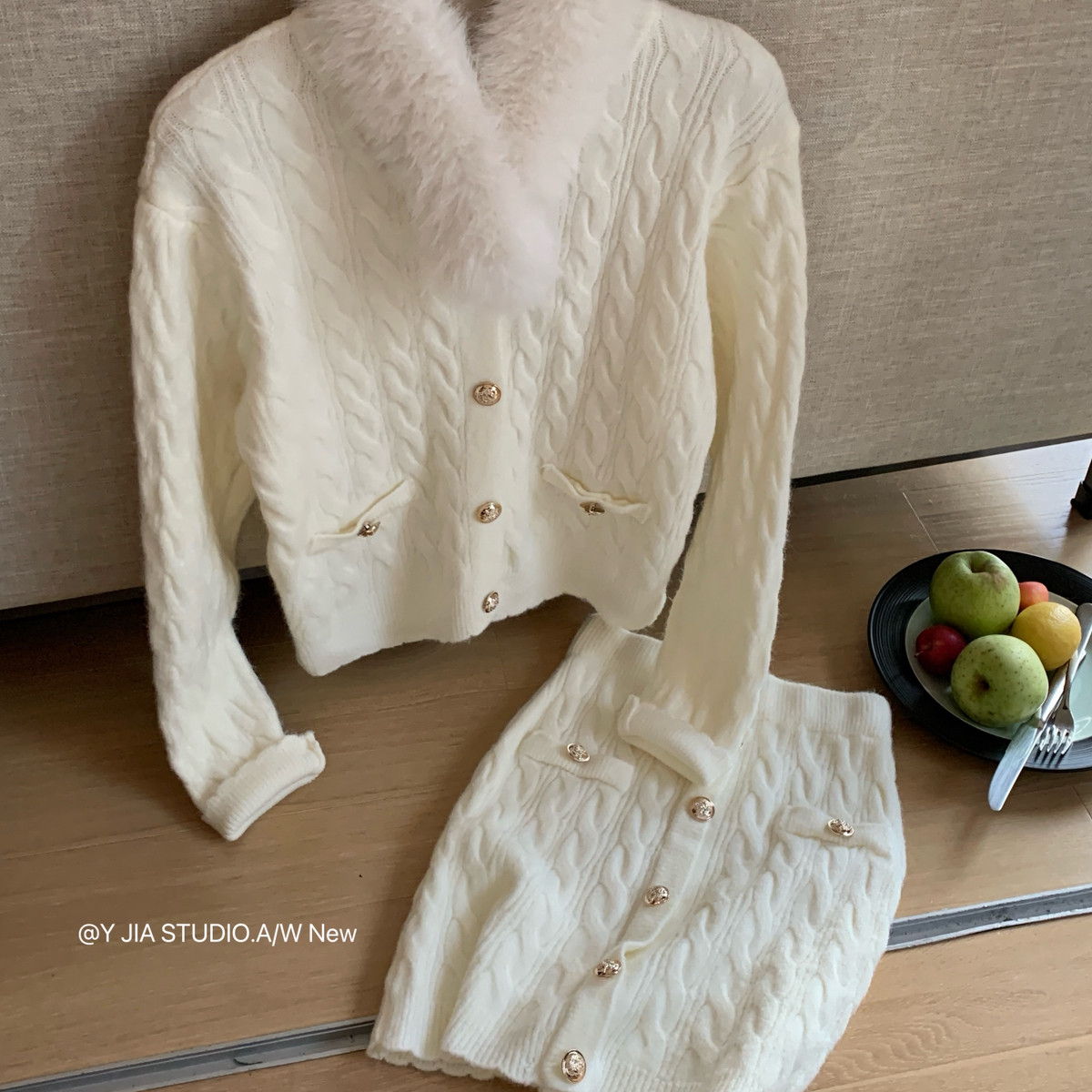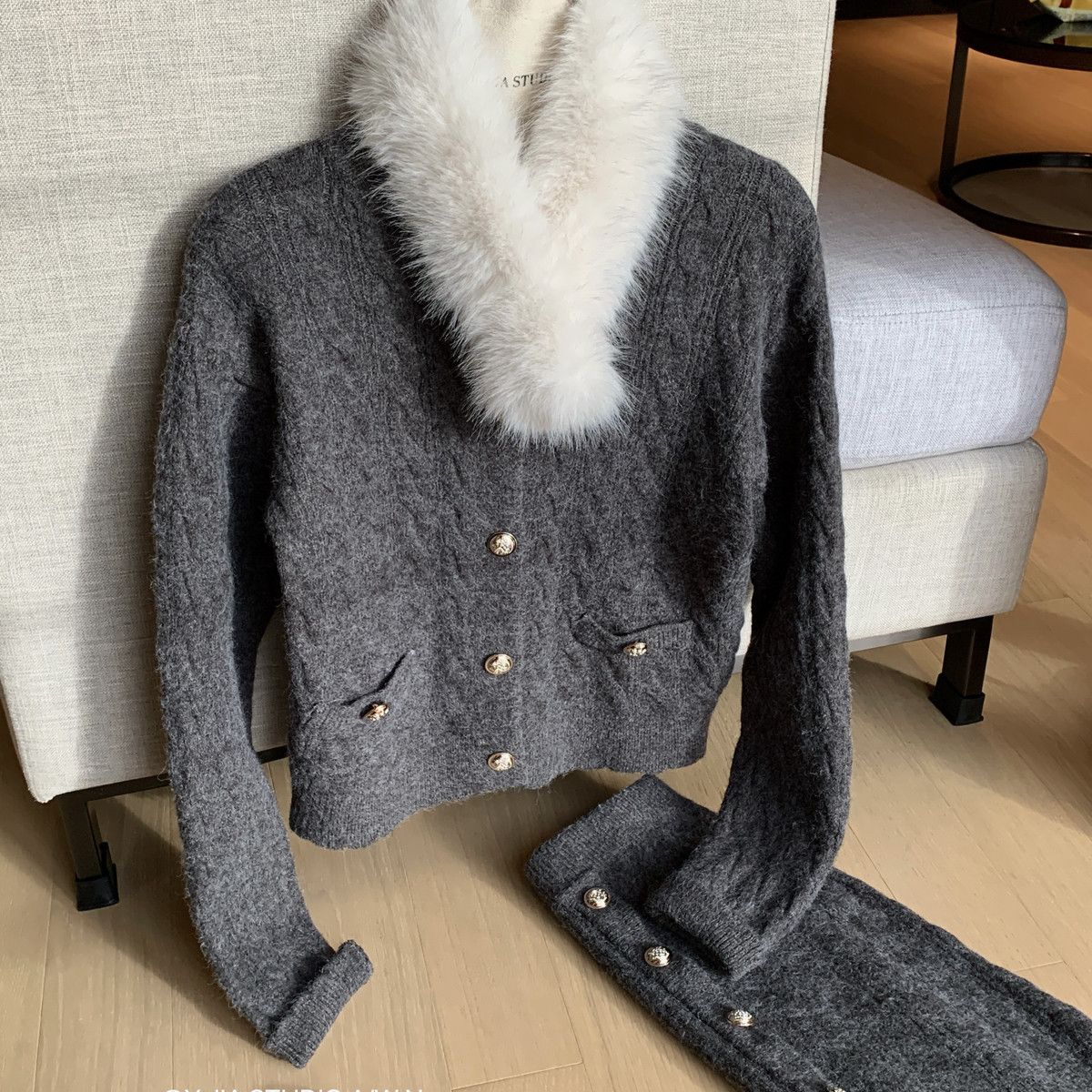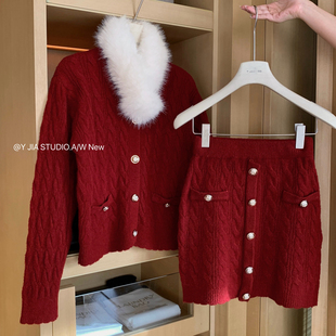 1355 狐狸毛仿毛围脖套装 包臀短裙半身裙 Cecil针织毛衣
