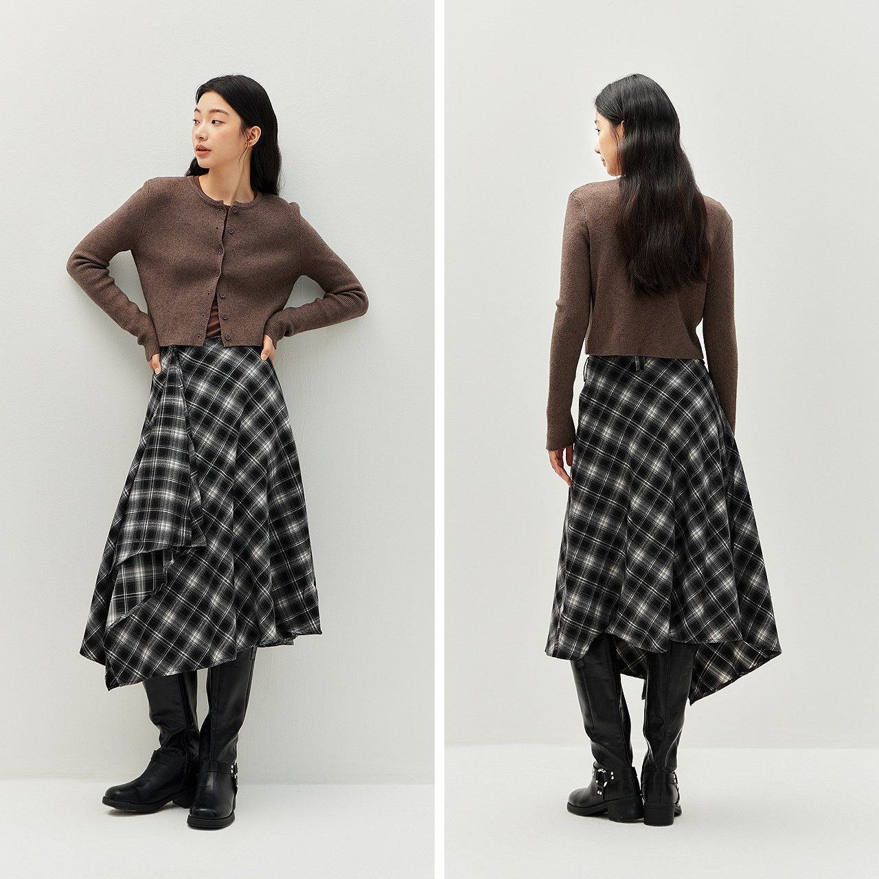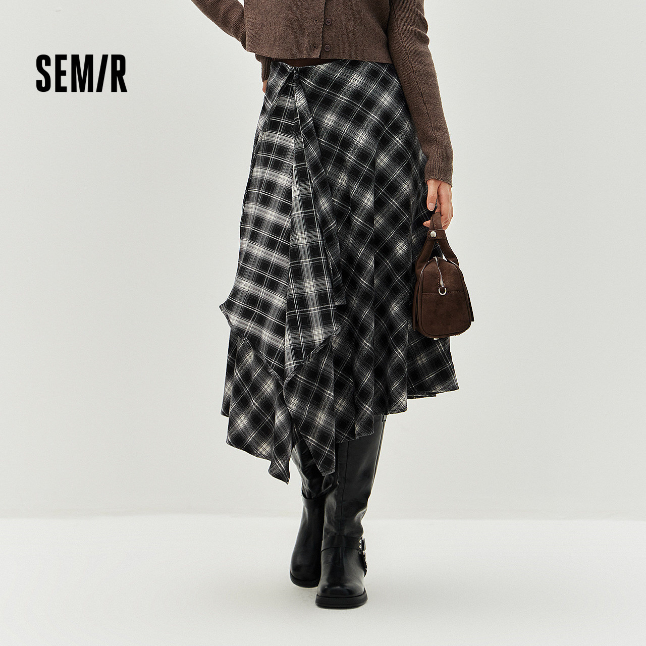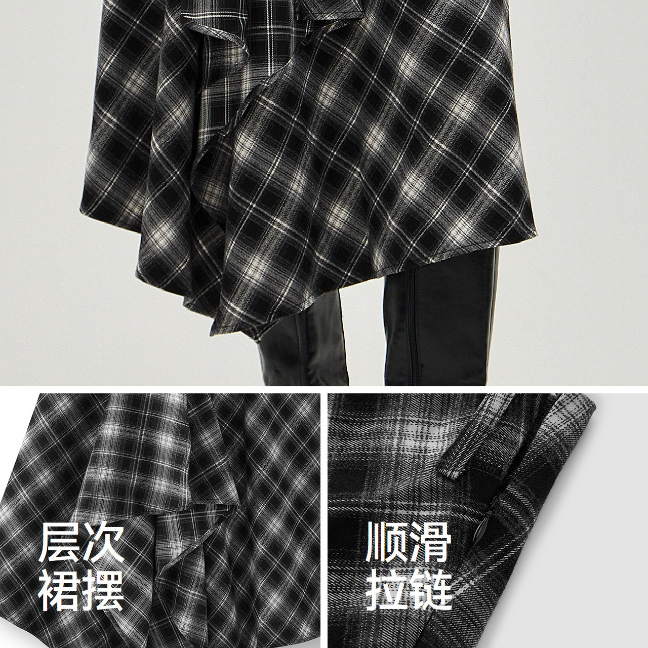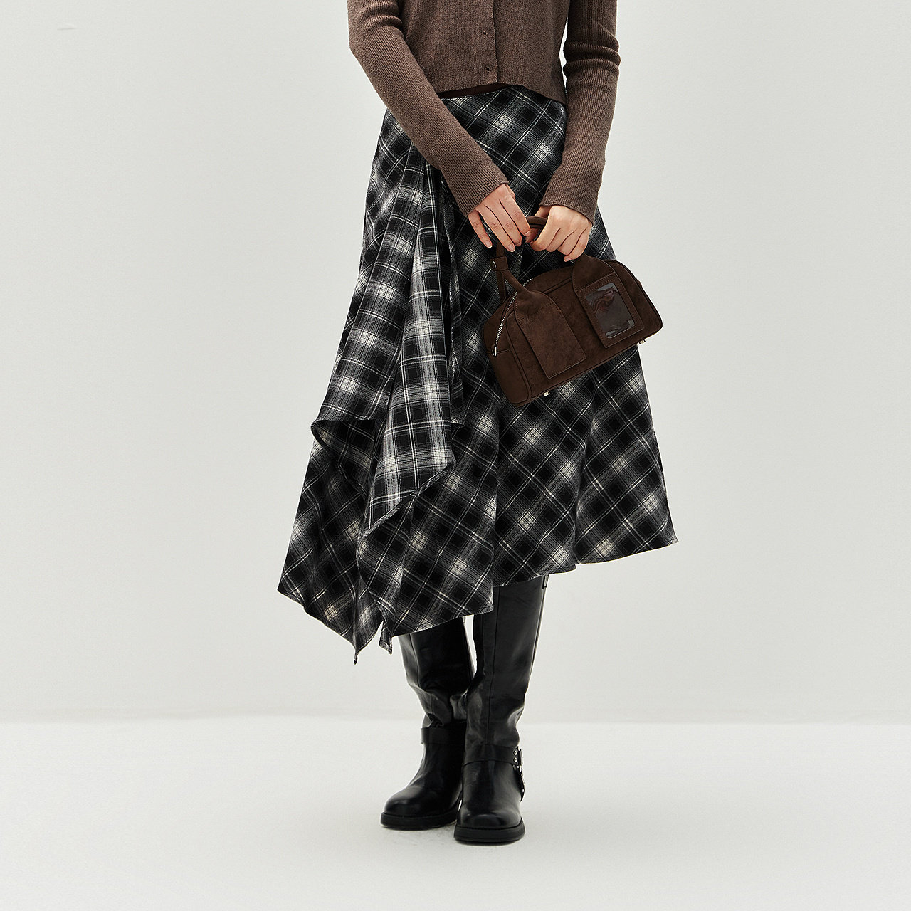 森马半身裙女冬磨毛格纹长裙2025新款 设计感不规则A字裙 甜酷个性