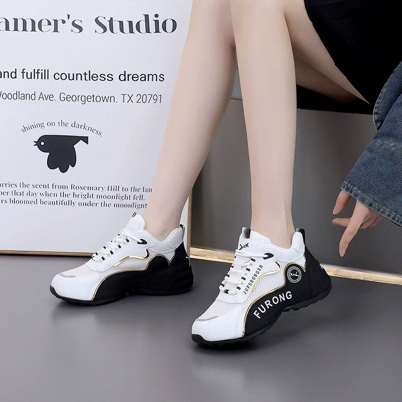 百搭女鞋 2025新款 休闲防滑耐磨老爹鞋 时尚 春秋皮面男女网面运动鞋