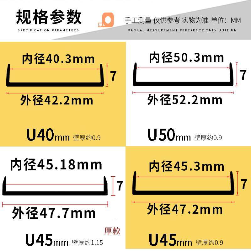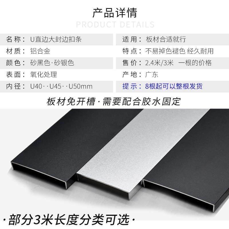 U形u40u45u50铝合金门板包边木板收口边夹板装 饰免漆板金属封边条