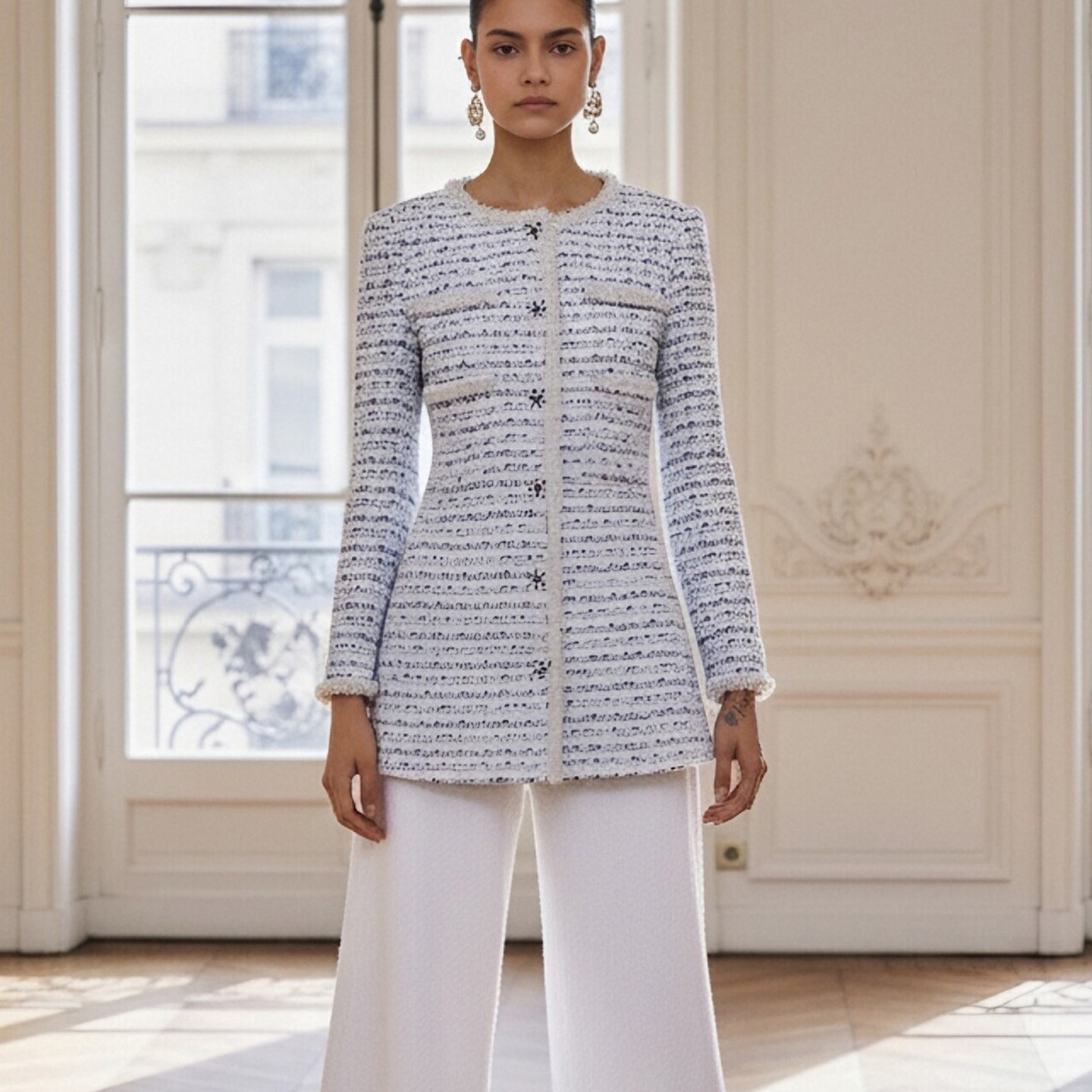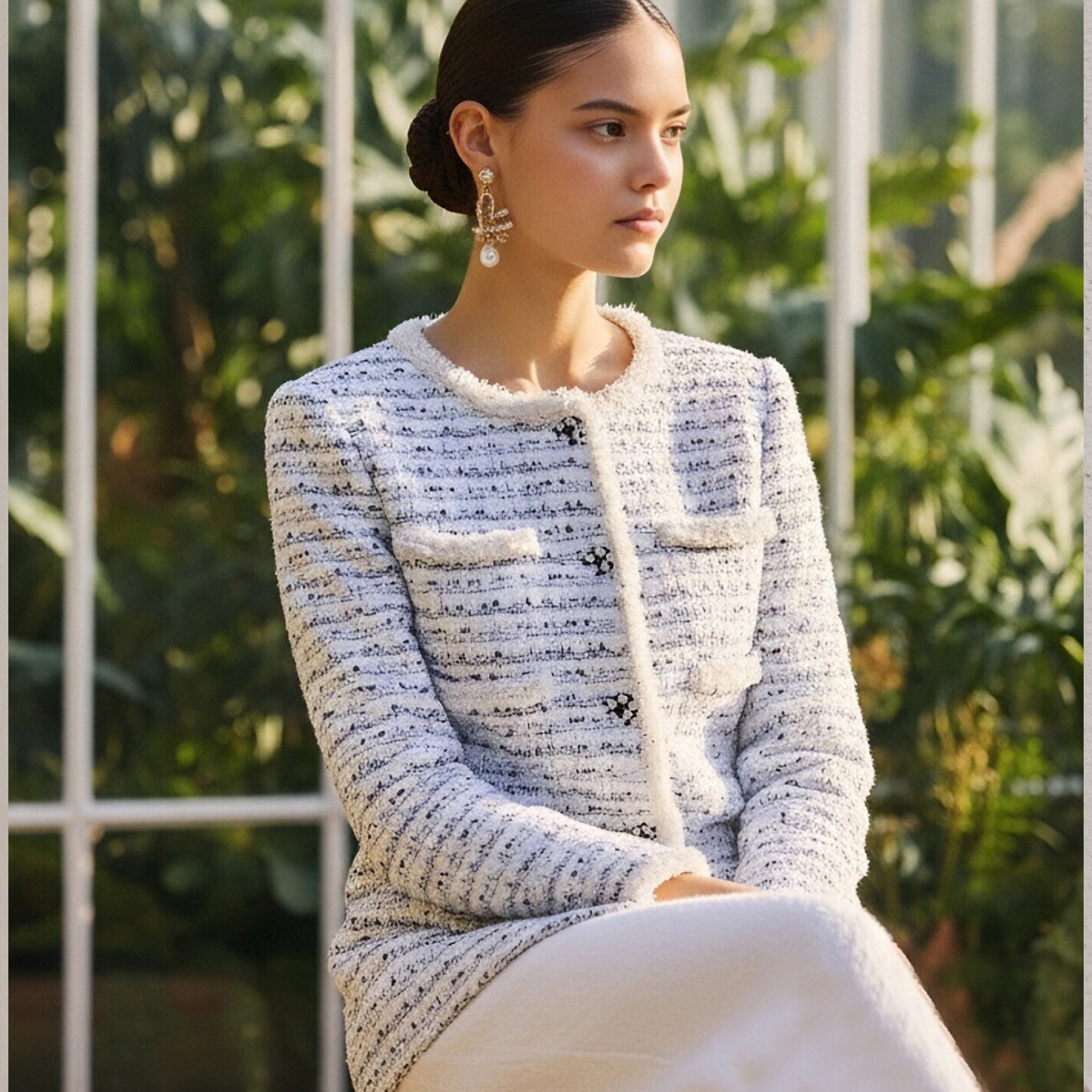 Marie Elie小香风粗花呢短外套女优雅淑女千金风排扣上衣
