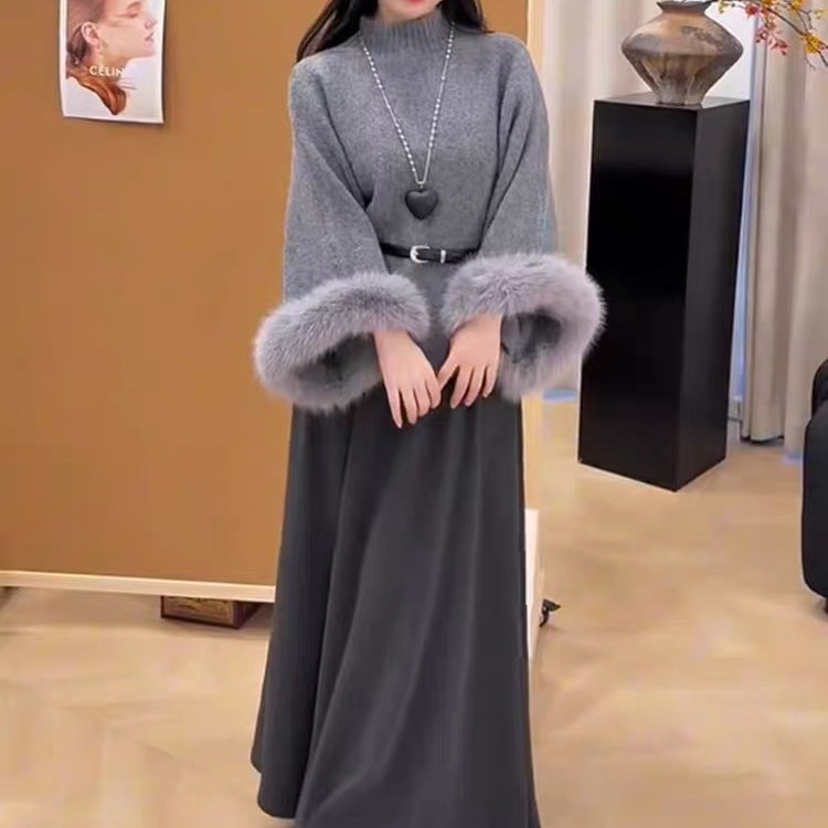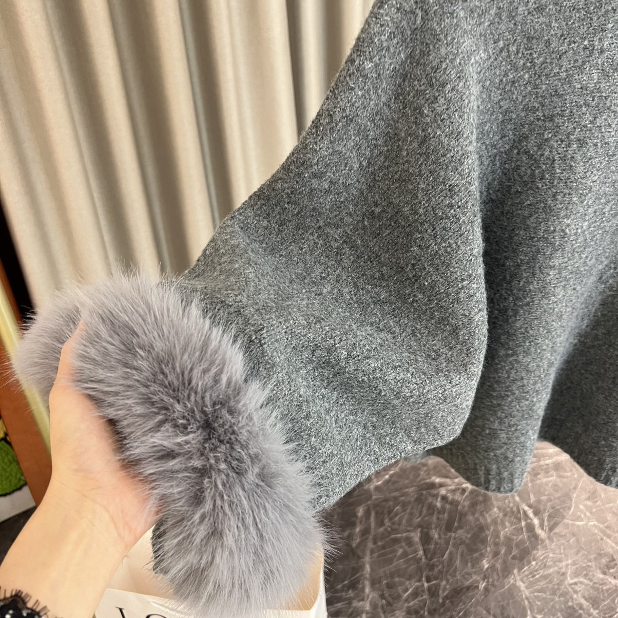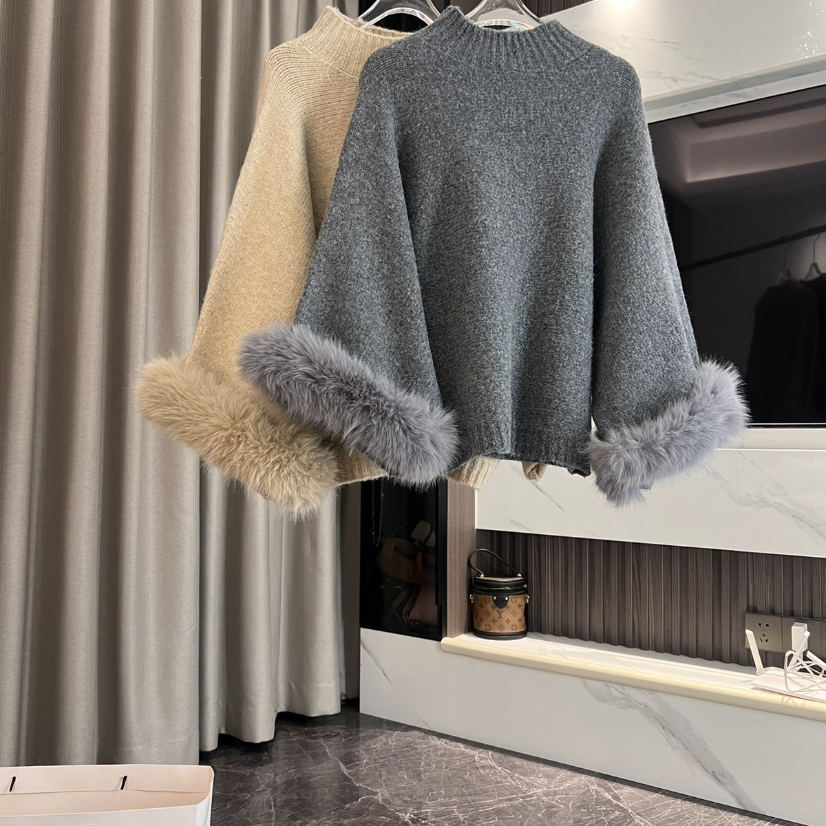 A99172 配毛领狐狸毛仿毛可拆卸 馨菲懒风拼袖 毛千金感套头毛衣