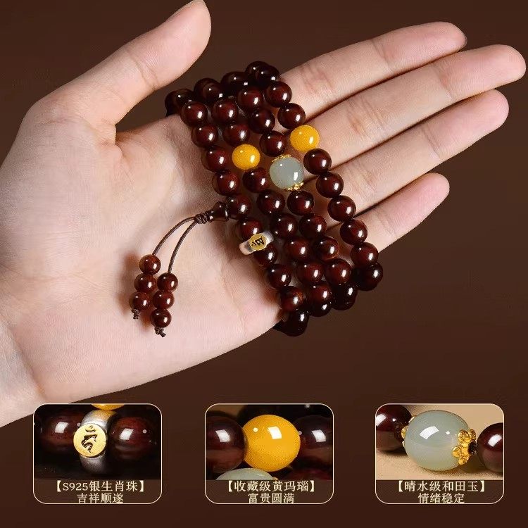 非洲金星小叶紫檀阿根廷绿檀108颗佛珠念珠多圈手链木质文玩礼品