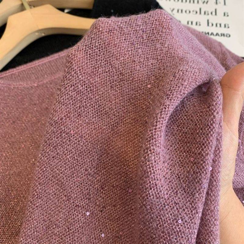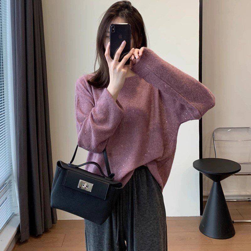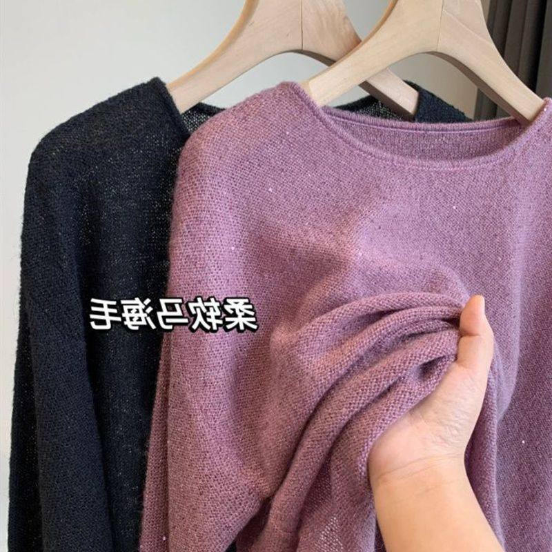 女秋 超仙显白亮片慵懒马海毛上衣宽松轻奢羊毛针织衫 美炸了 薄款