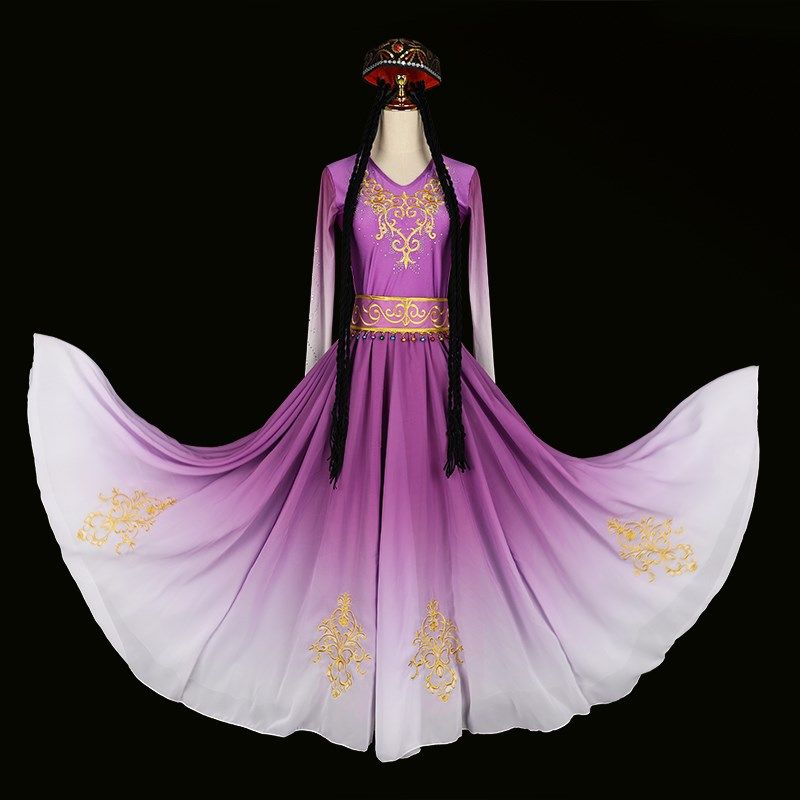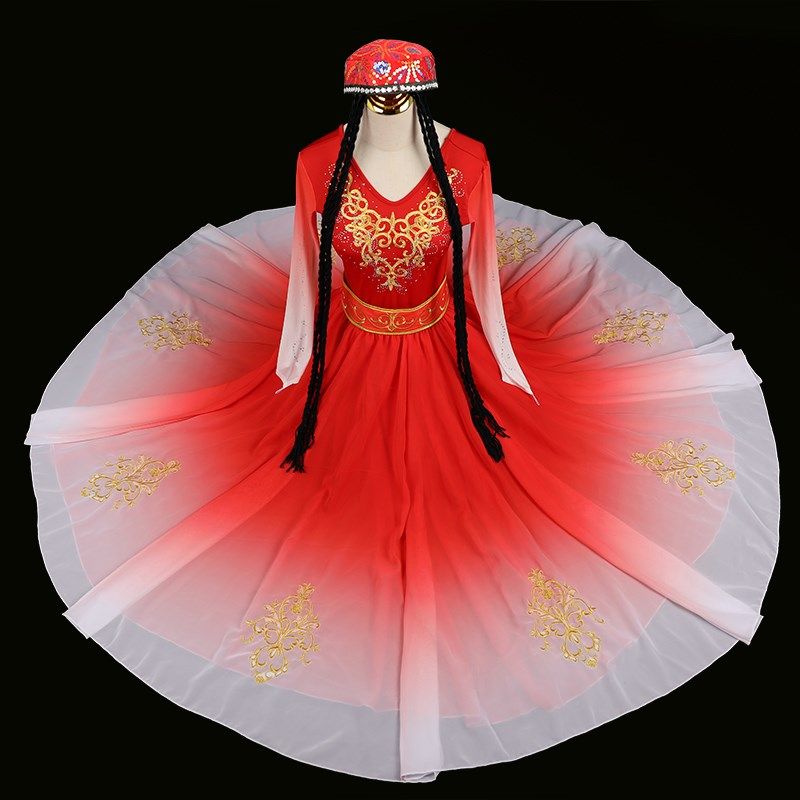 极速新疆舞大摆裙女维族s舞蹈服艺考维吾尔族表演服舞台演出服装