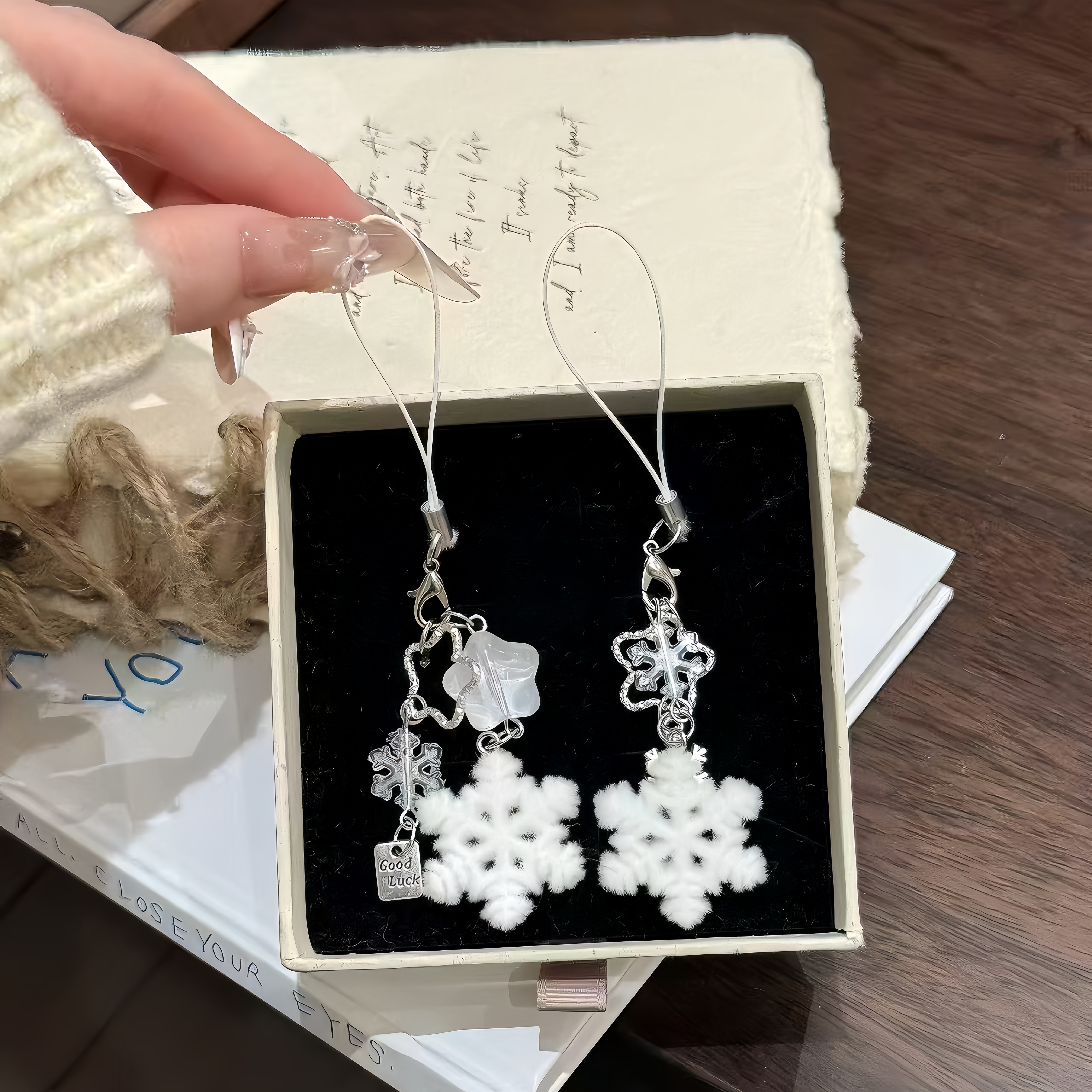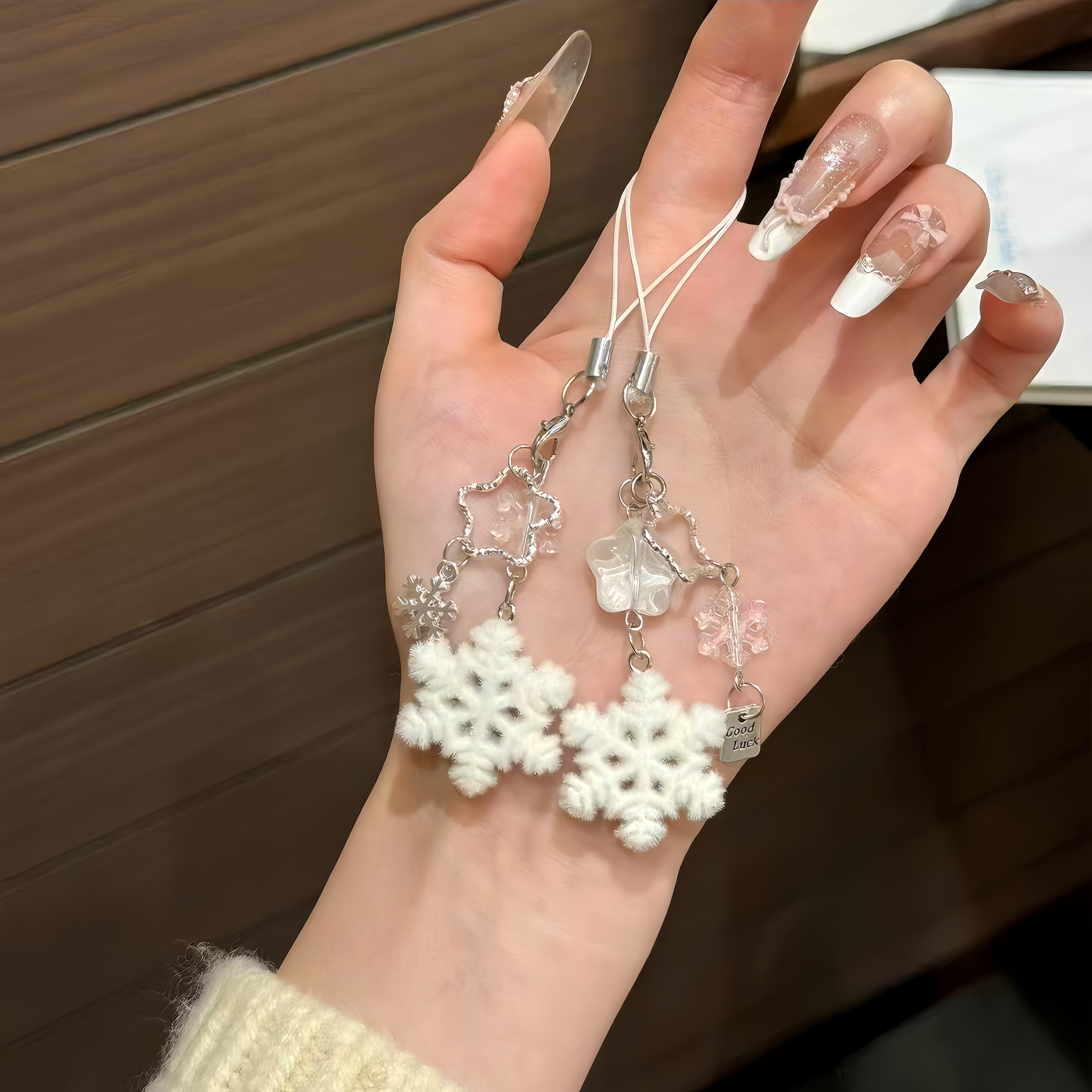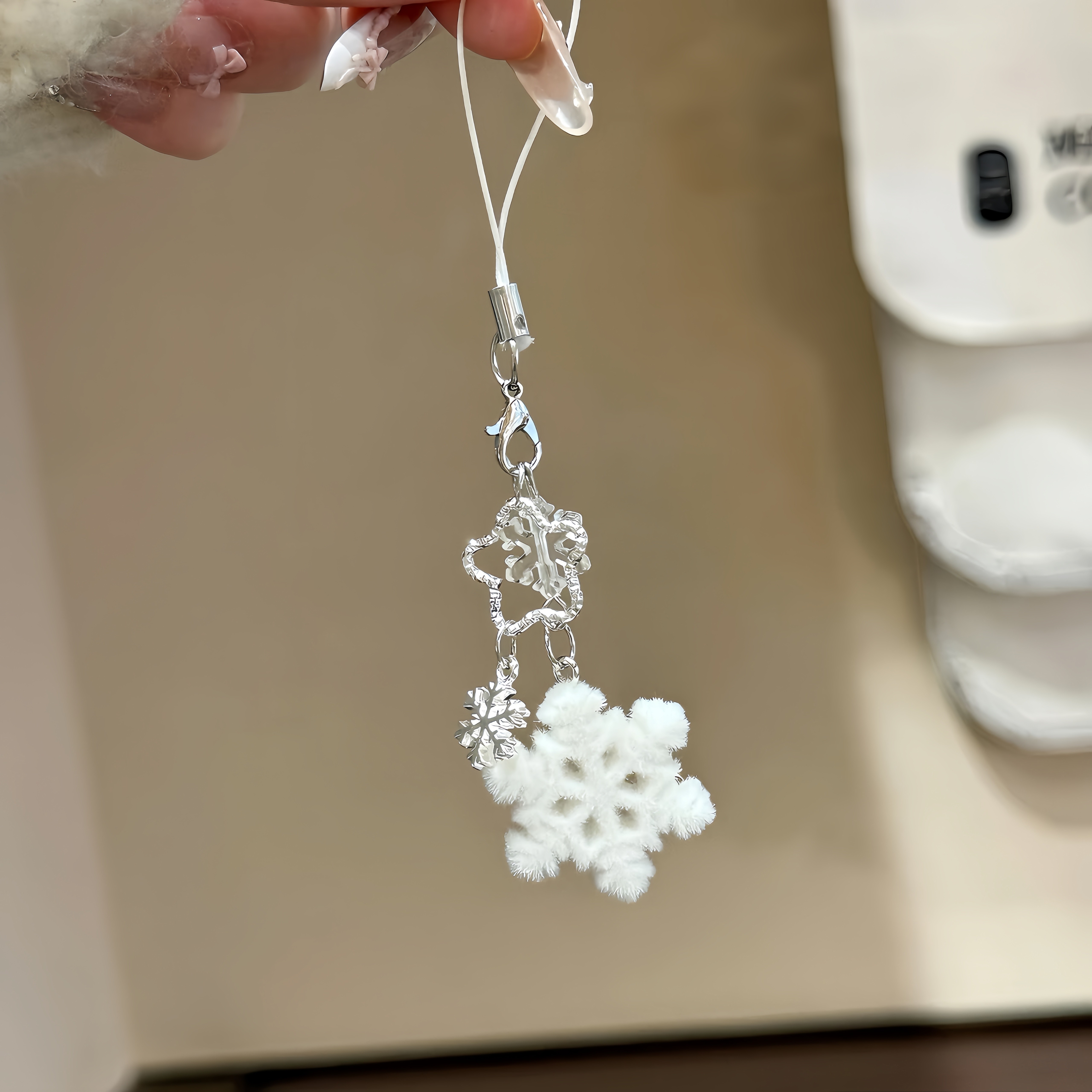 甜美圣诞雪花挂件冬日植绒雪花包包钥匙扣手机链圣诞节闺蜜小礼物